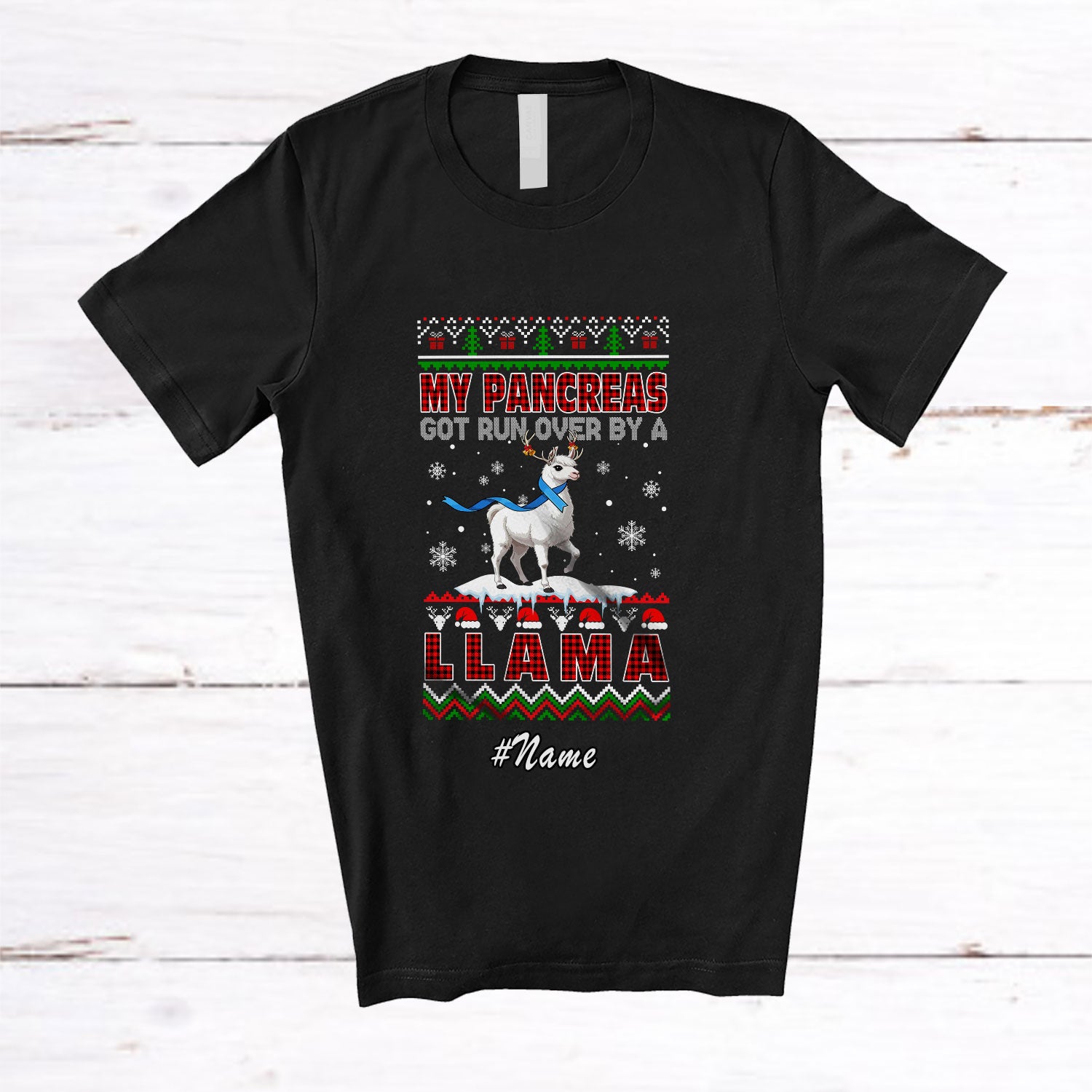 • Personalized Custom Name Pancreas Run Over Llama; Joyful Christmas Sweater Diabetes Plaid T-Shirt. This cotton t-shirt is a durable staple product with a classic fit. One of the most popular items, it has a relaxed style made for everyday and casual wear.