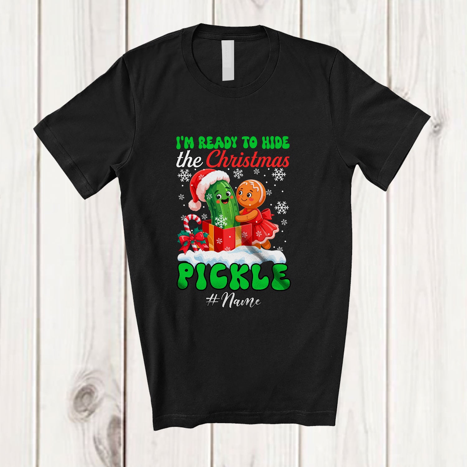 Personalized Custom Name Ready To Hide The Pickle; Sarcastic Christmas Pickle In Package Box Gingerbread T-Shirt