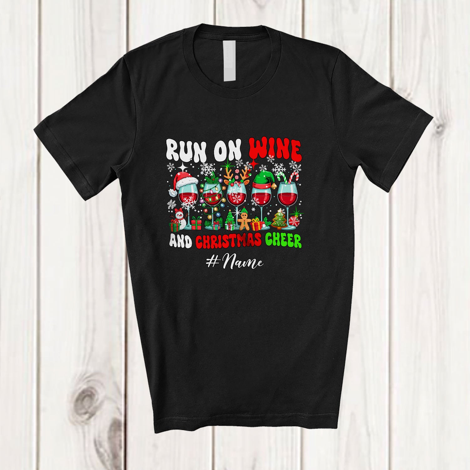 Personalized Custom Name Run On Wine And Christmas Cheer; Joyful Santa Elf Wine; Drinking T-Shirt