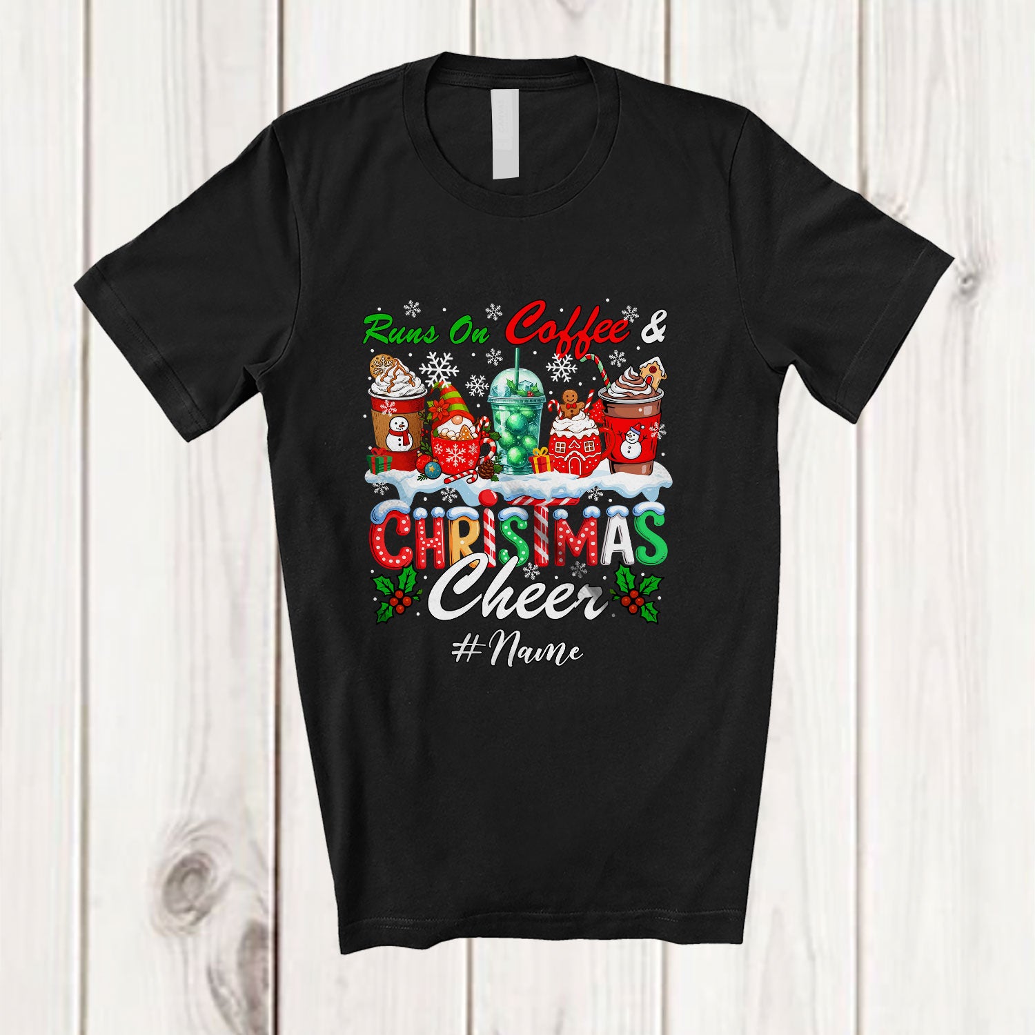 Personalized Custom Name Runs On Coffee And Christmas Cheer; Humorous Snow Gnome; Family T-Shirt