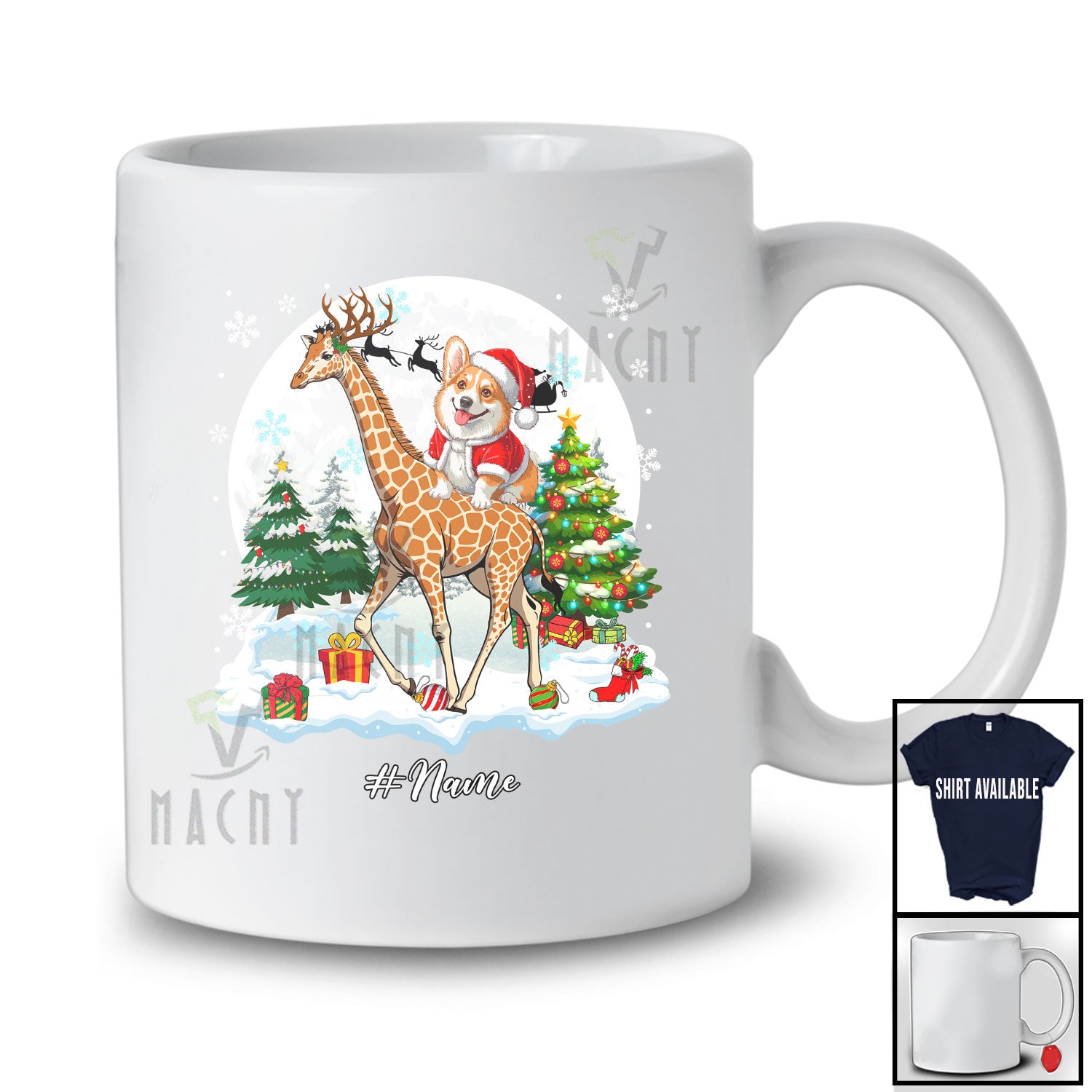 Personalized Custom Name Santa Corgi Riding Giraffe; Merry Christmas Moon Snow Animal T-Shirt