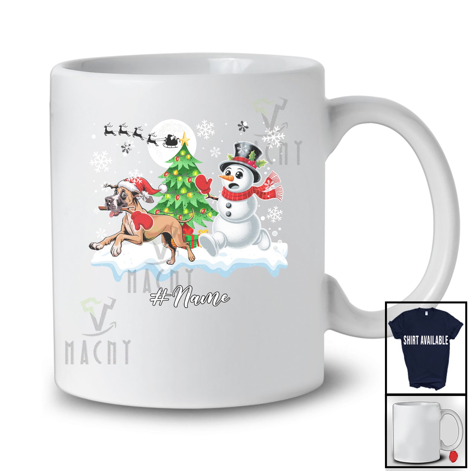 • Personalized Custom Name Santa Great Dane Snowman; Lovely Christmas Tree Friends Family T-Shirt. This cotton t-shirt is a durable staple product with a classic fit. One of the most popular items, it has a relaxed style made for everyday and casual wear.