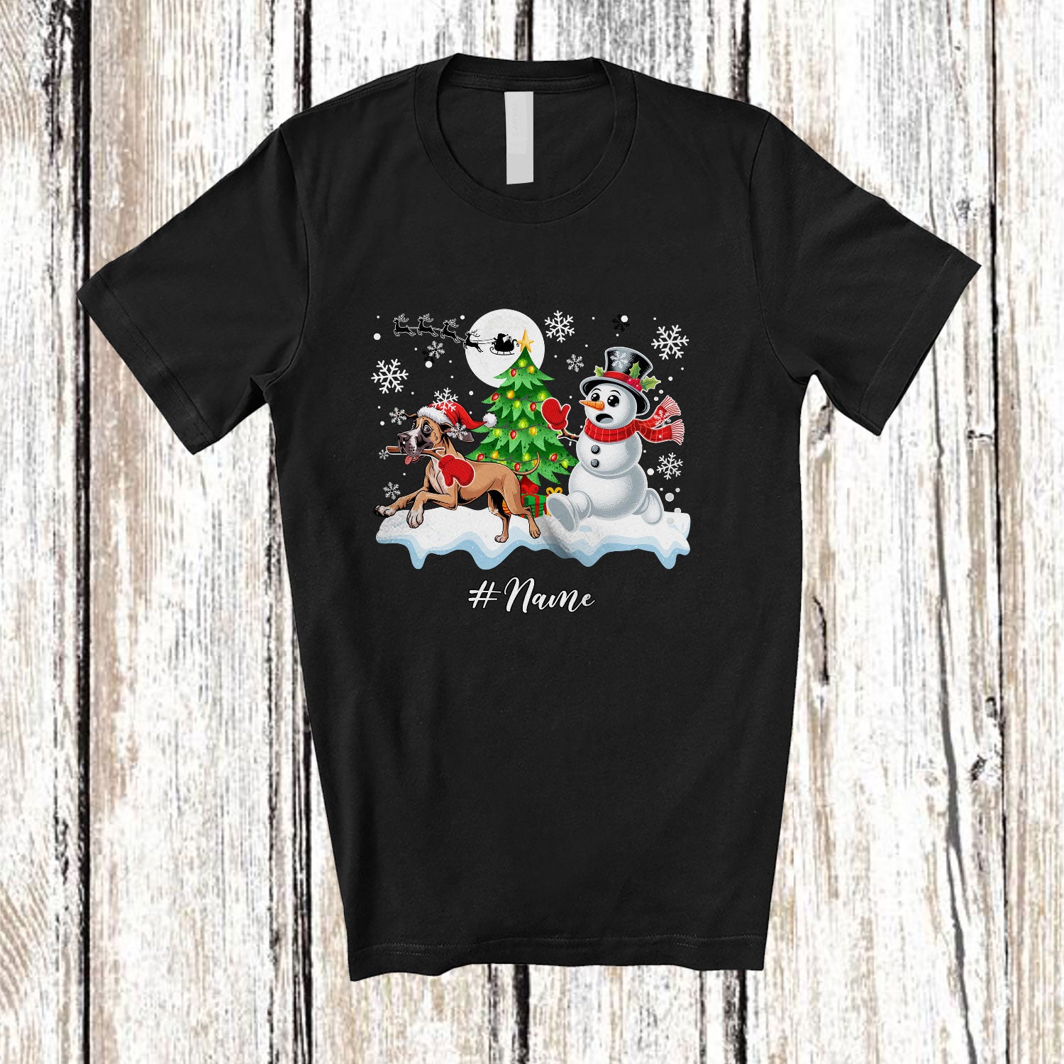 Personalized Custom Name Santa Great Dane Snowman; Lovely Christmas Tree Friends Family T-Shirt