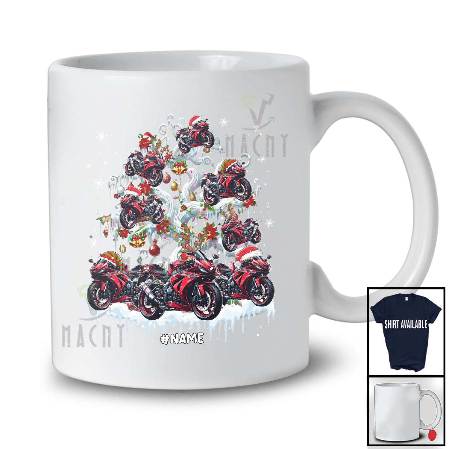 new MacnyStore - Personalized Custom Name Santa Motorbike On Christmas Tree; Joyful X-mas Snow Lights Biker T-Shirt – Macnystore