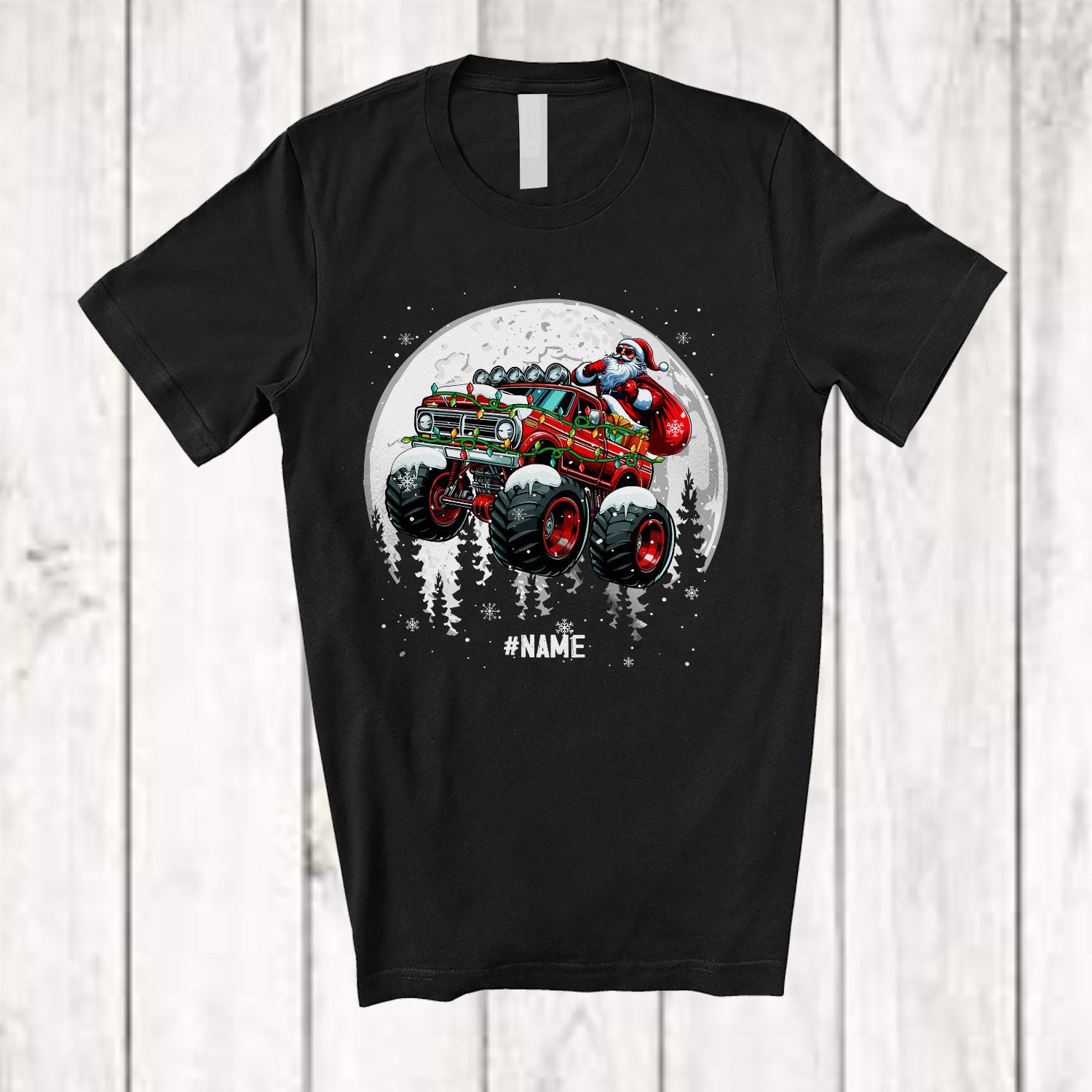 Personalized Custom Name Santa Racing On Monster Truck; Joyful Christmas Lights Moon; Driver T-Shirt