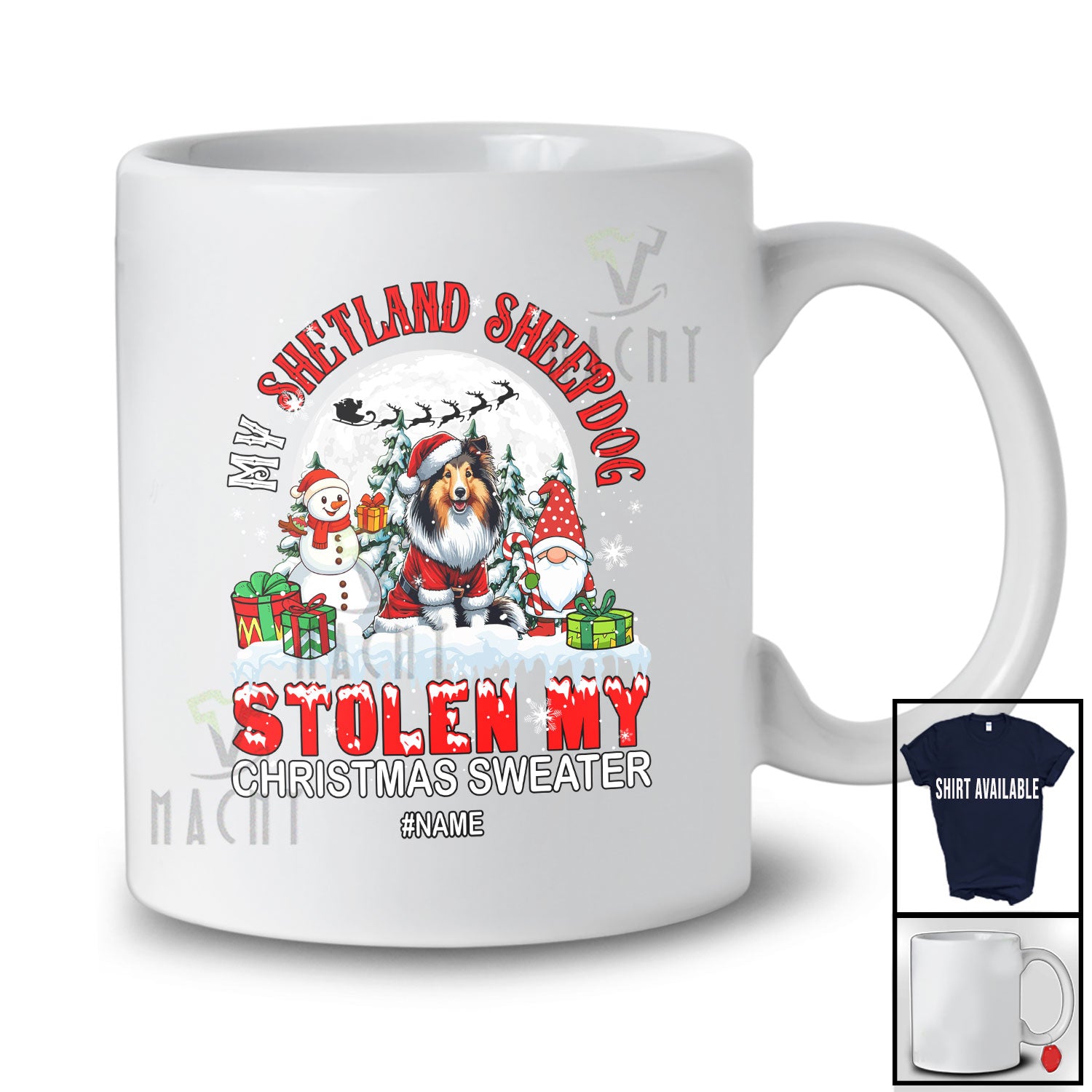 • Personalized Custom Name Shetland Sheepdog Stolen My Christmas Sweater; Joyful Moon Gnome T-Shirt. This cotton t-shirt is a durable staple product with a classic fit. One of the most popular items, it has a relaxed style made for everyday and casual wear.