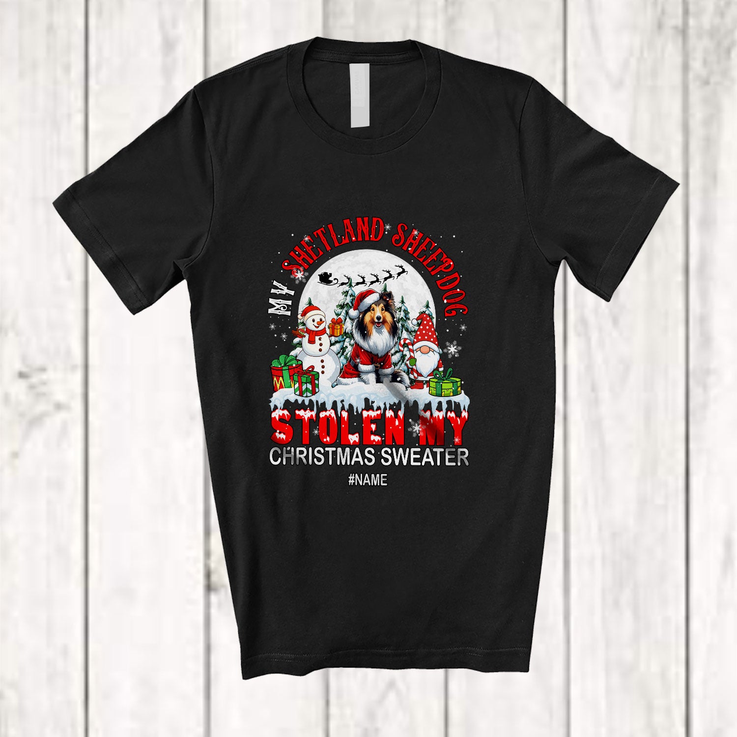Personalized Custom Name Shetland Sheepdog Stolen My Christmas Sweater; Joyful Moon Gnome T-Shirt