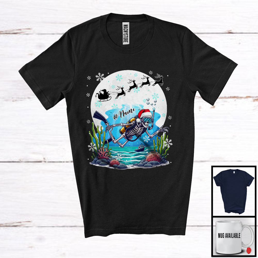 Personalized Custom Name Skeleton Scuba Diving; Joyful Christmas Moon Tree Skeleton; Family T-Shirt