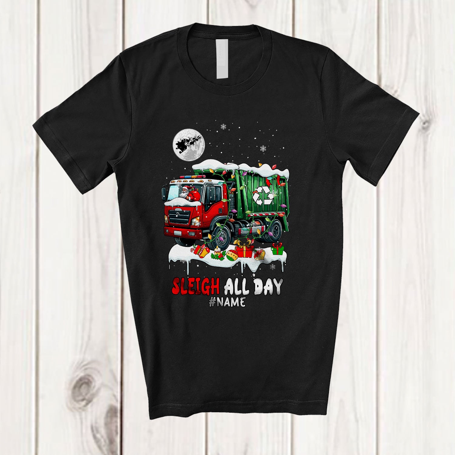 Personalized Custom Name Sleigh All Day; Awesome Christmas Santa Riding Garbage Truck; Family T-Shirt
