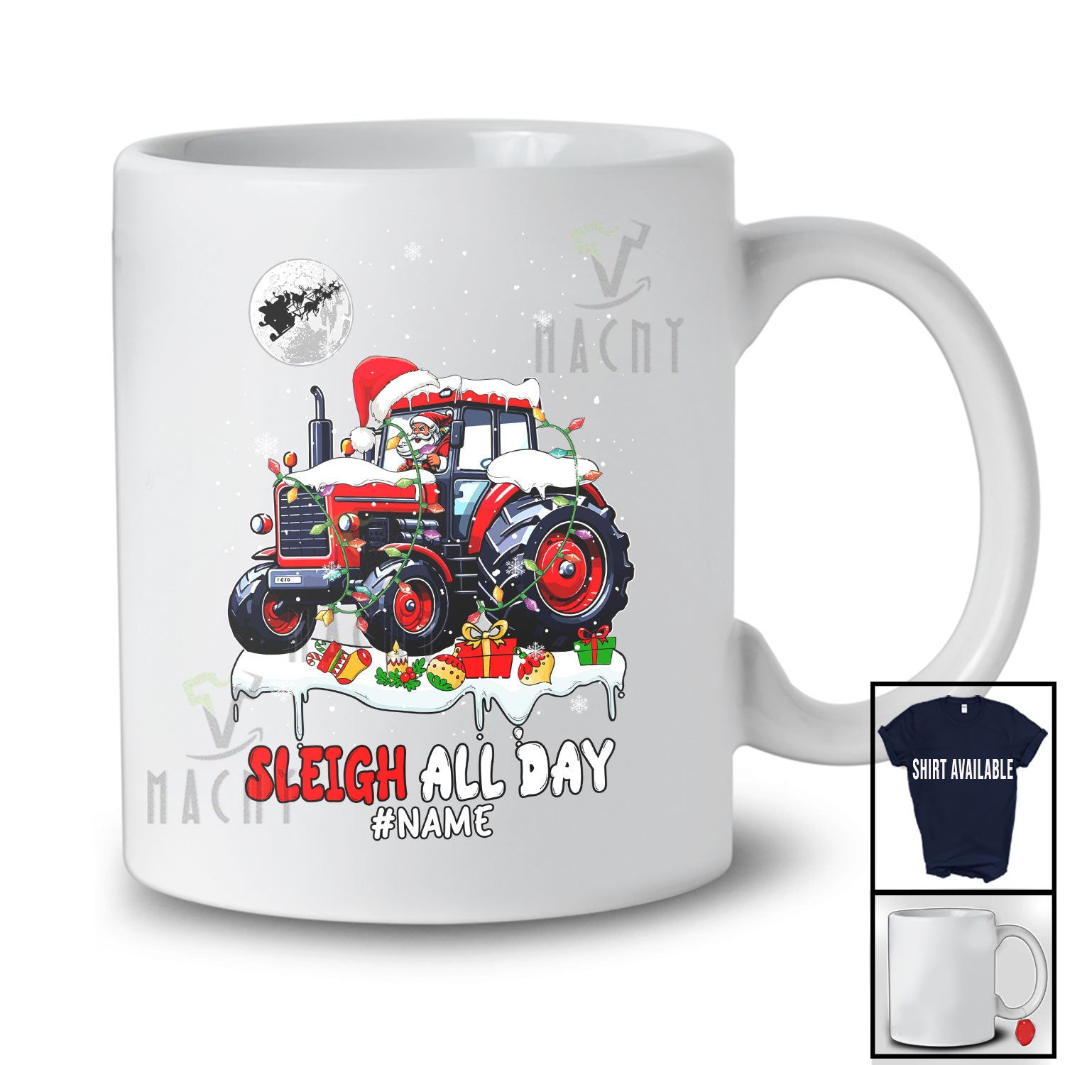 This Personalized Custom Name Sleigh All Day; Awesome Christmas Santa Riding Tractor Truck; Family T-Shirt is great idea gift for your family, friends in this birthday, christmas, mother's day, father's day, patrick's day or any holiday.