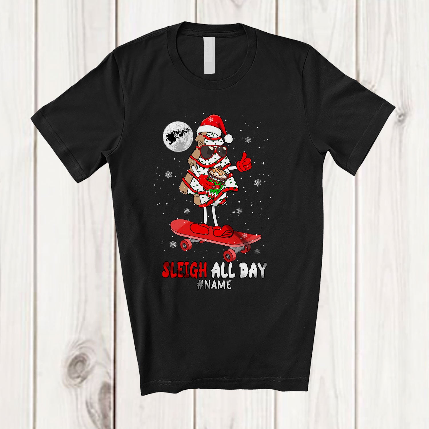 Personalized Custom Name Sleigh All Day; Sarcastic Christmas Tree Cake On Skateboard T-Shirt