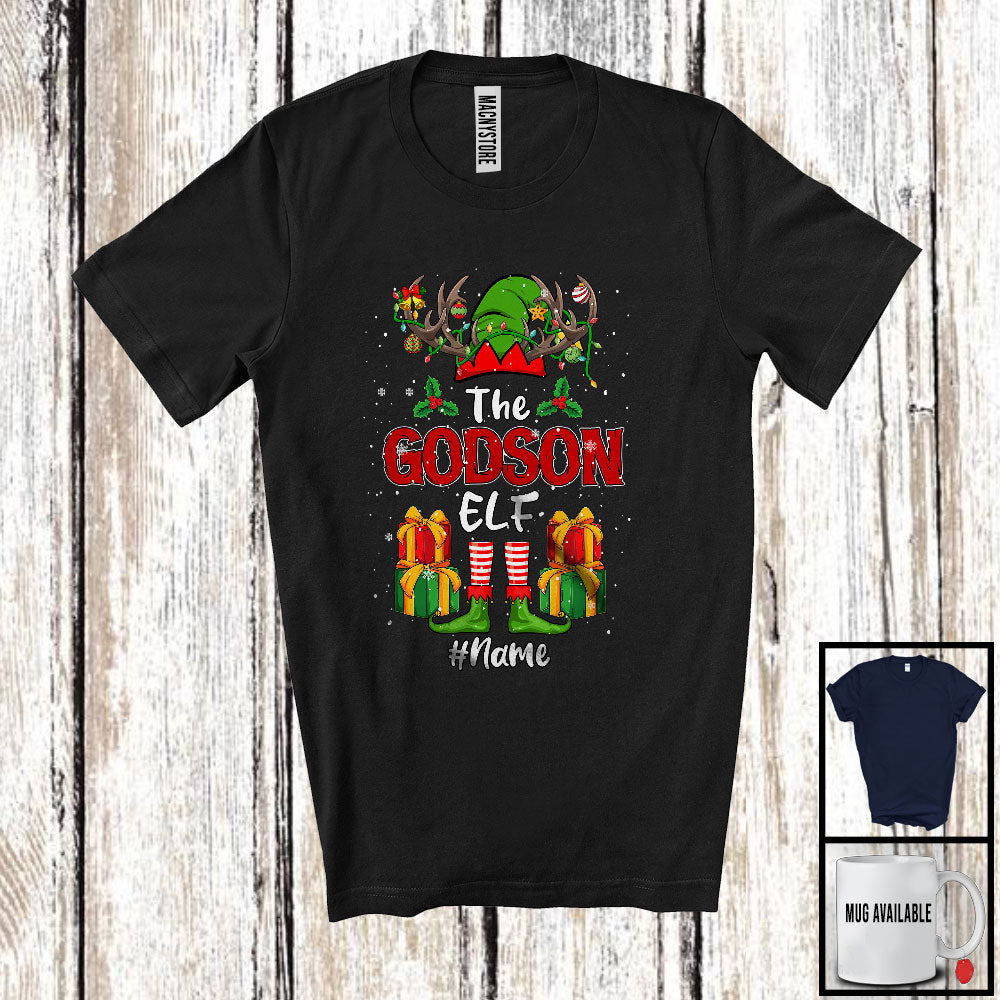 Personalized Custom Name The Godson Elf; Awesome Christmas Elf Reindeer; Family Group T-Shirt