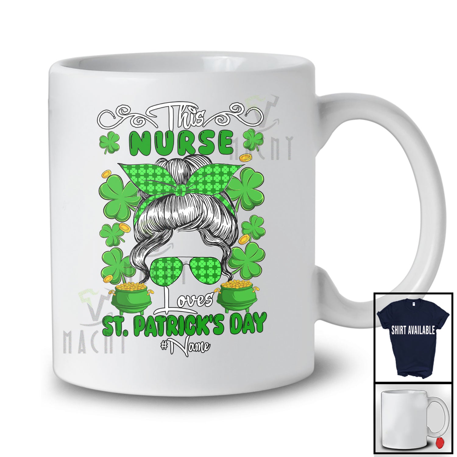 Personalized Custom Name This Nurse Loves St. Patrick's Day; Proud Plaid Messy Bun Hair T-Shirt. This cotton t-shirt is a durable staple product with a classic fit. One of the most popular items, it has a relaxed style made for everyday and casual wear.