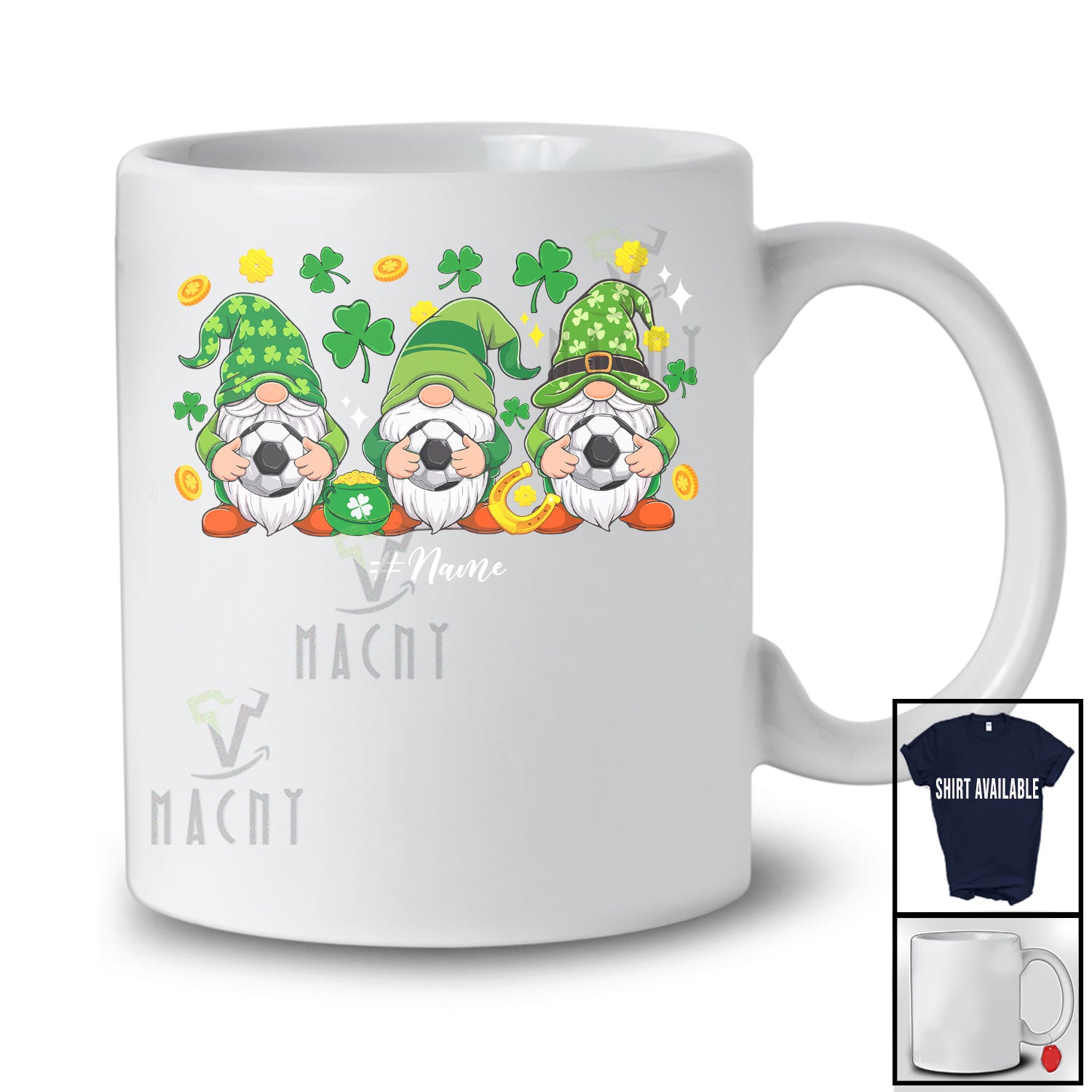 Personalized Custom Name Three Gnomes Soccer Player; Awesome St. Patrick's Day Shamrock T-Shirt. This cotton t-shirt is a durable staple product with a classic fit. One of the most popular items, it has a relaxed style made for everyday and casual wear.