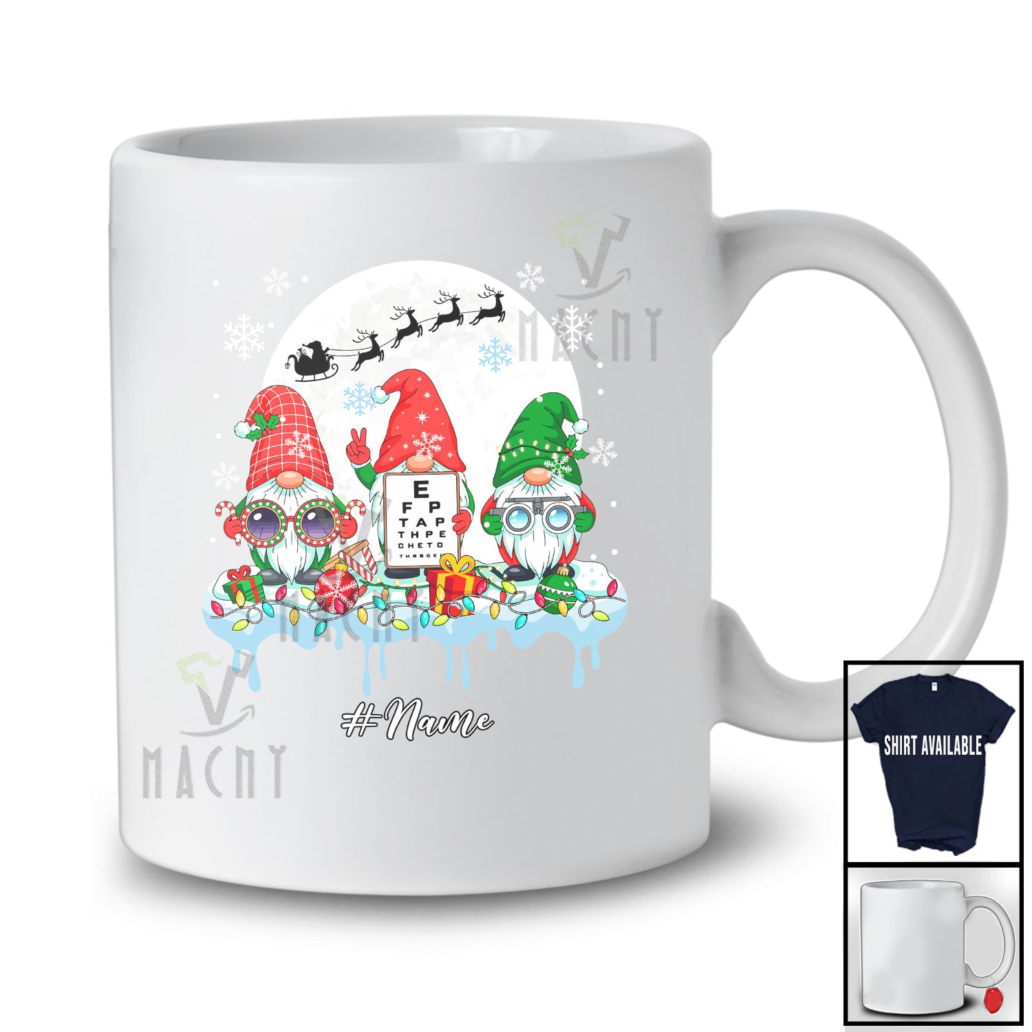 • Personalized Custom Name Three Gnomes With Optical Technician Tools; Joyful Christmas Moon T-Shirt. This cotton t-shirt is a durable staple product with a classic fit. One of the most popular items, it has a relaxed style made for everyday and casual wear.