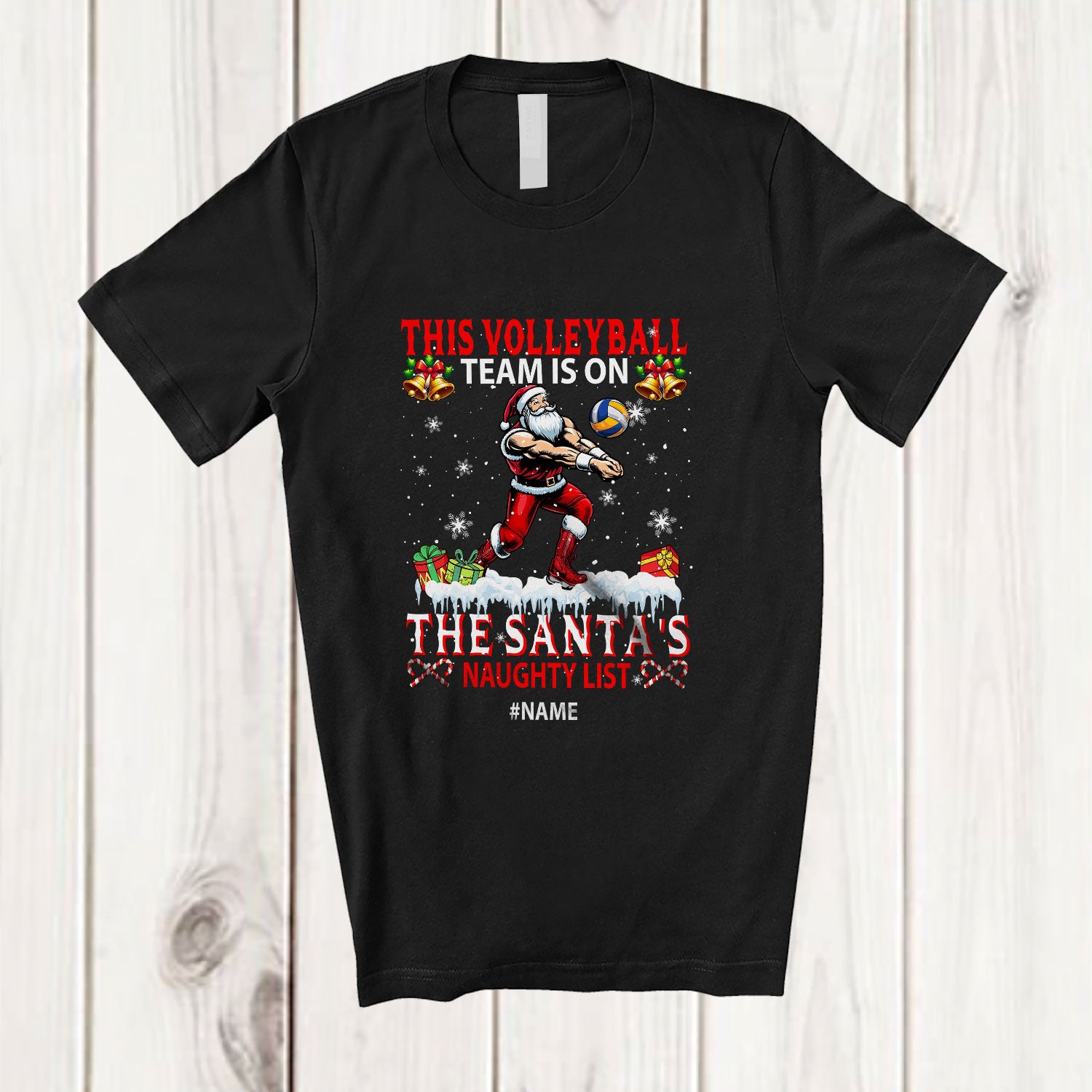 Personalized Custom Name Volleyball Team On Santa's Naughty List; Joyful Christmas Player T-Shirt