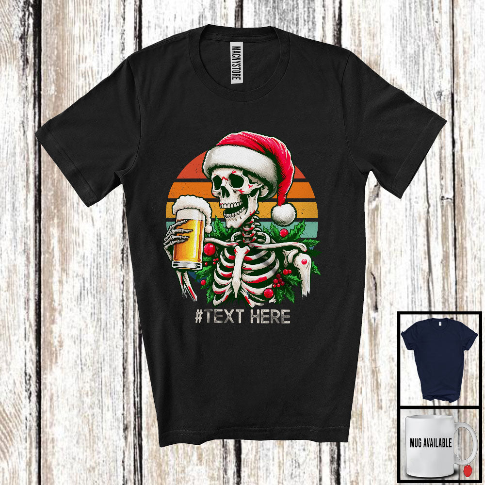Personalized Custom Text Vintage Retro Santa Skeleton Beer Glass; Merry Christmas Drinking Drunker T-Shirt