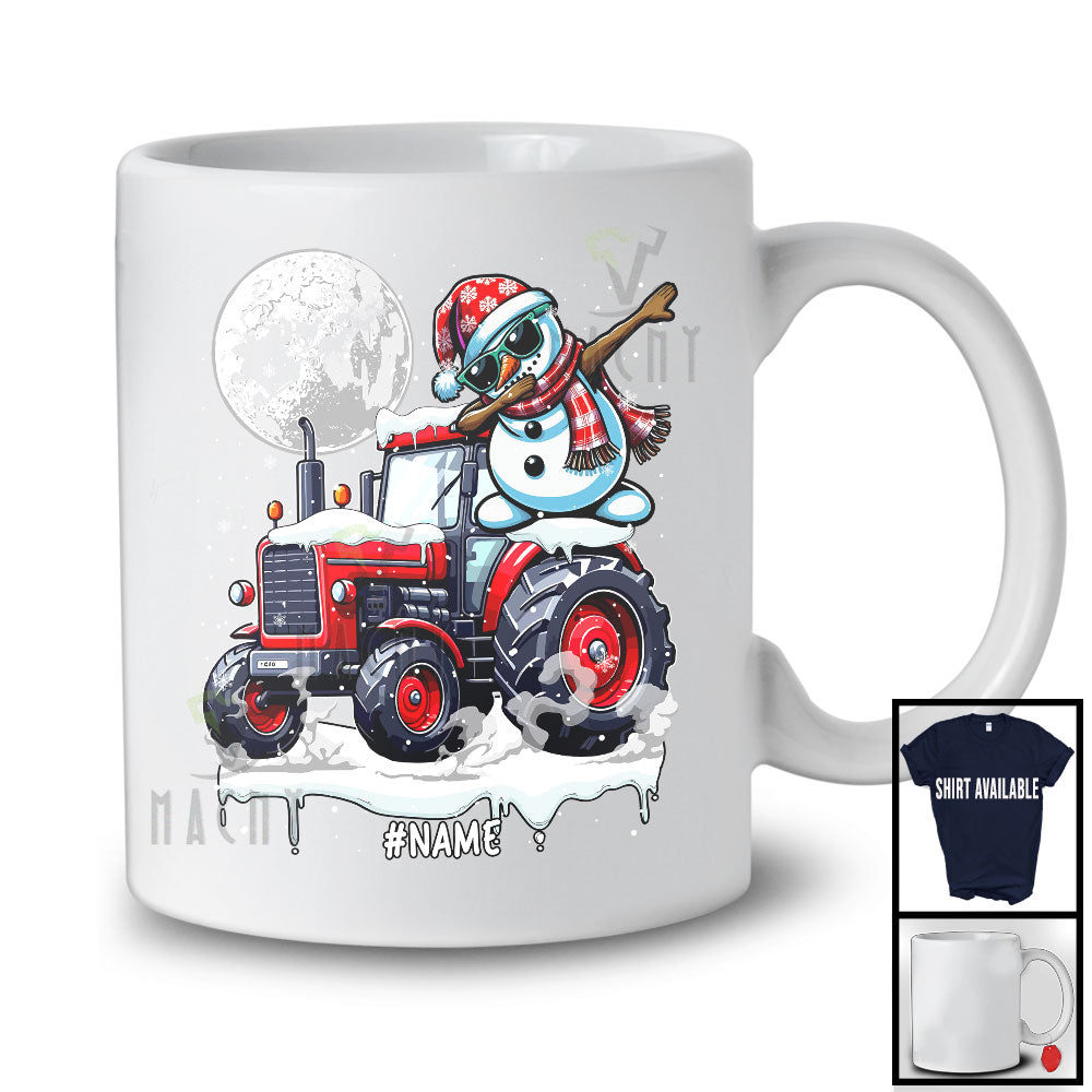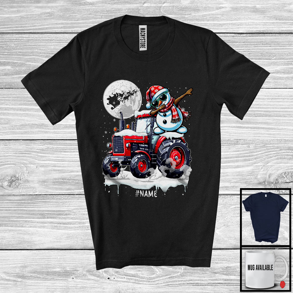 Personalized Dabbing Snowman On Tractor; Joyful Christmas Custom Name; Tractor Driver T-Shirt
