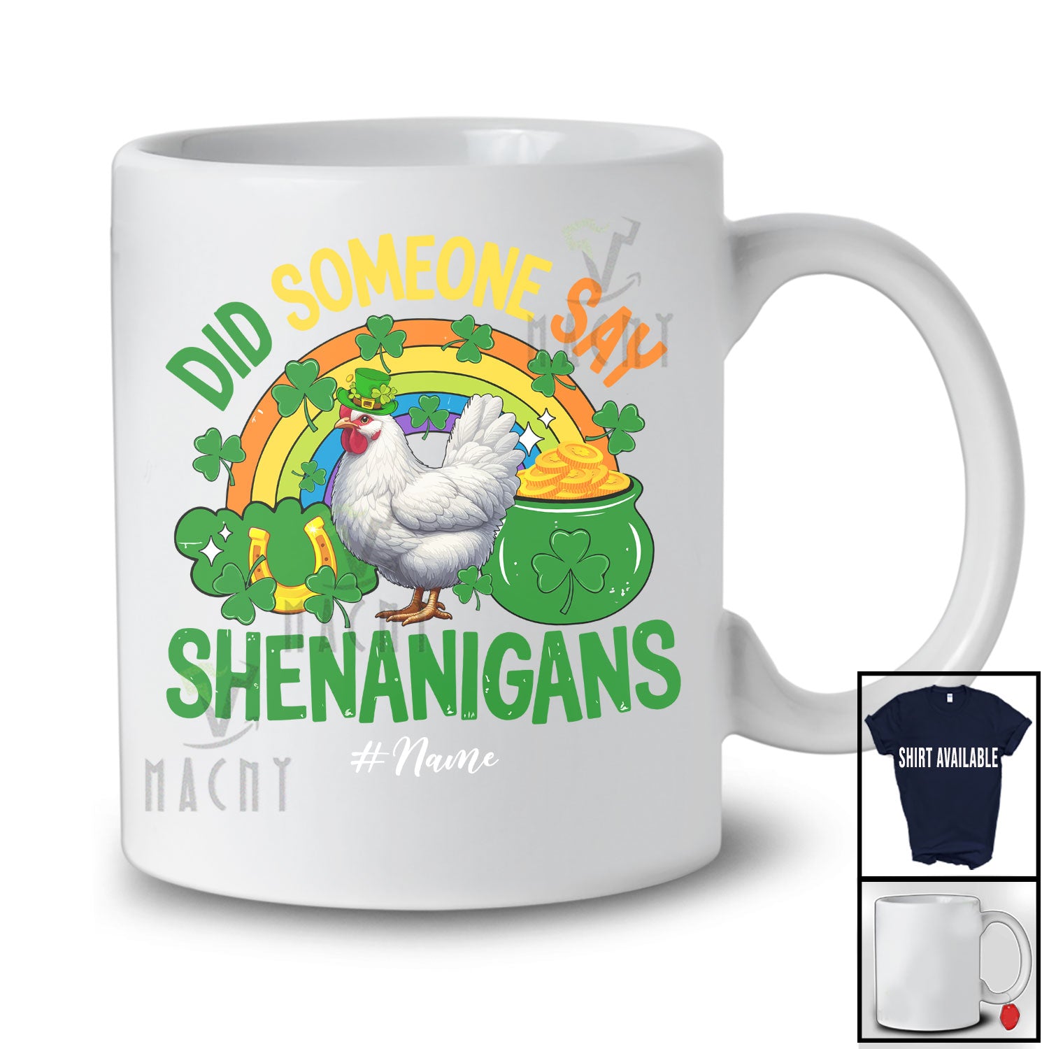 Personalized Did Someone Say Shenanigans; Lovely St. Patrick's Day Custom Name Chicken Rainbow T-Shirt