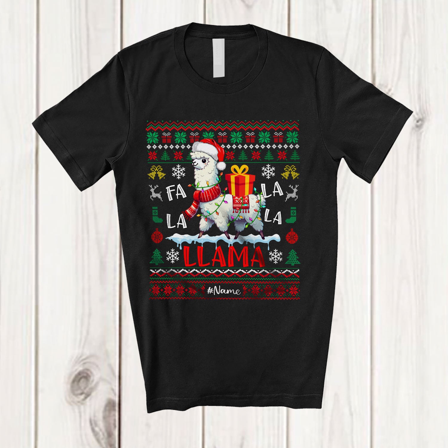 Personalized Fa La Llama; Joyful Christmas Lights Sweater; Custom Name Santa Llama T-Shirt