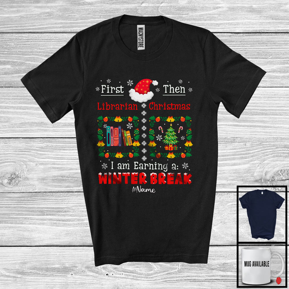 Personalized First Librarian Then Christmas; Joyful X-mas Winter Break; Custom Name Librarian T-Shirt