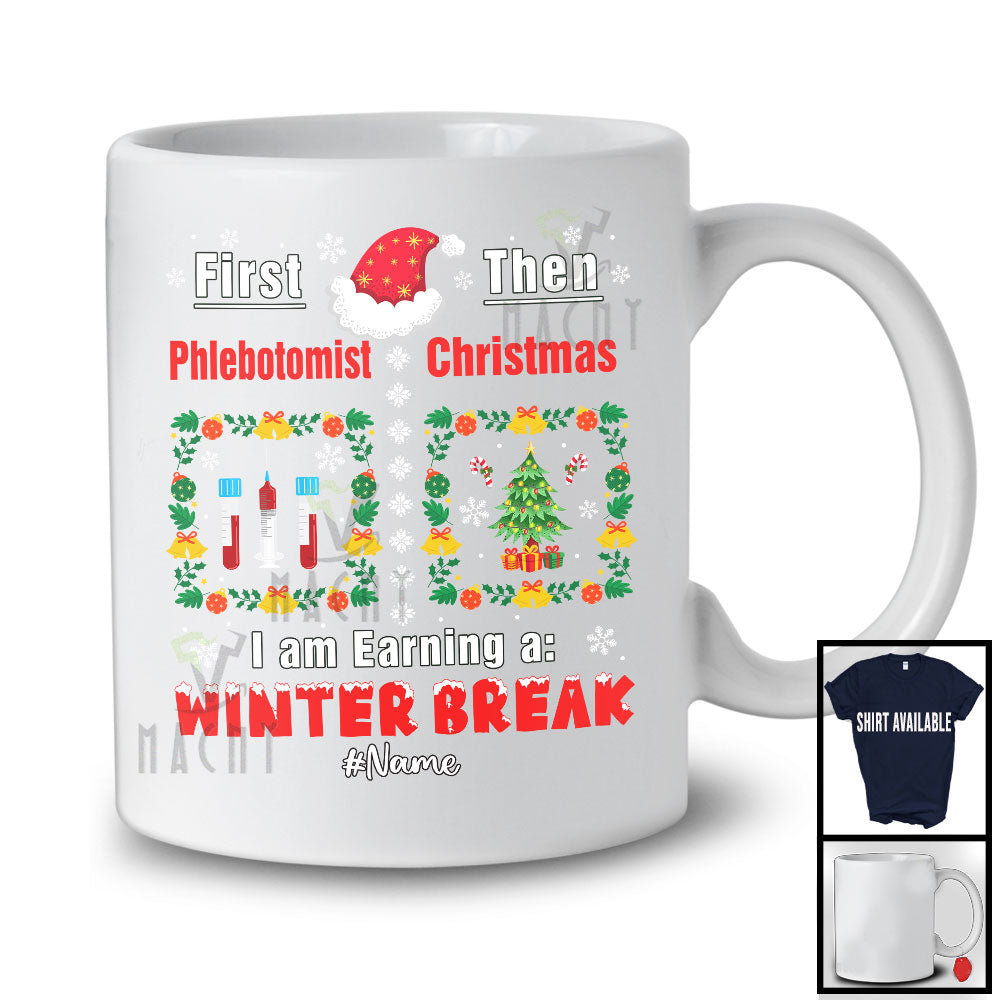 Personalized First Phlebotomist Then Christmas; Joyful X-mas Winter Break; Custom Name Jobs T-Shirt