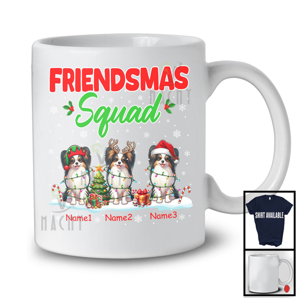 Personalized Friendsmas Squad; Awesome Christmas Lights Custom Name Three Papillon dog T-Shirt
