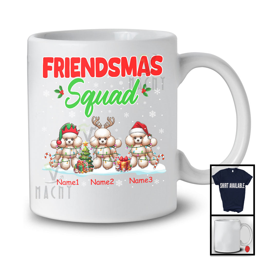 • Personalized Friendsmas Squad; Awesome Christmas Lights Custom Name Three Poodle T-Shirt. This cotton t-shirt is a durable staple product with a classic fit. One of the most popular items, it has a relaxed style made for everyday and casual wear.