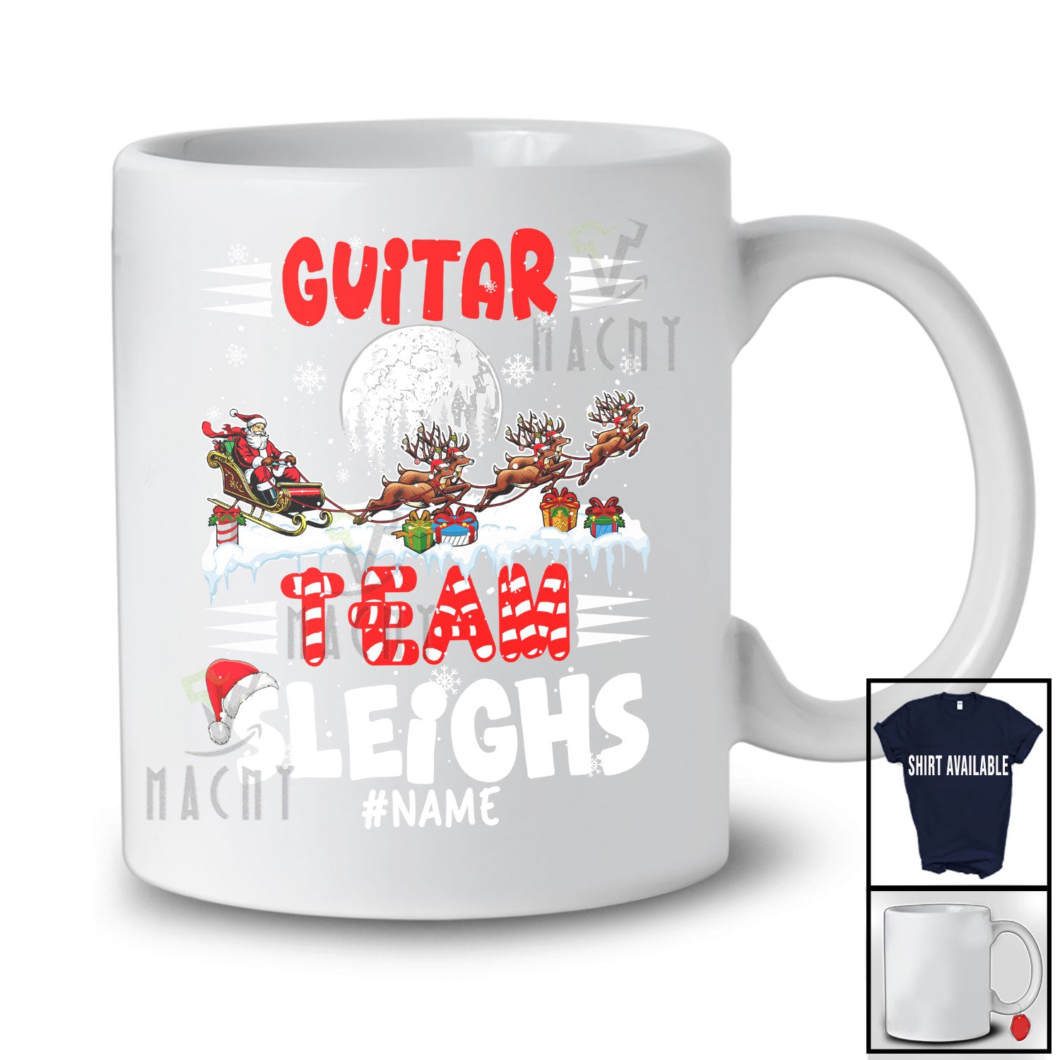 • Personalized Guitar Team Sleighs; Joyful Christmas Santa Sled Reindeer; Custom Name Jobs T-Shirt. This cotton t-shirt is a durable staple product with a classic fit. One of the most popular items, it has a relaxed style made for everyday and casual wear.