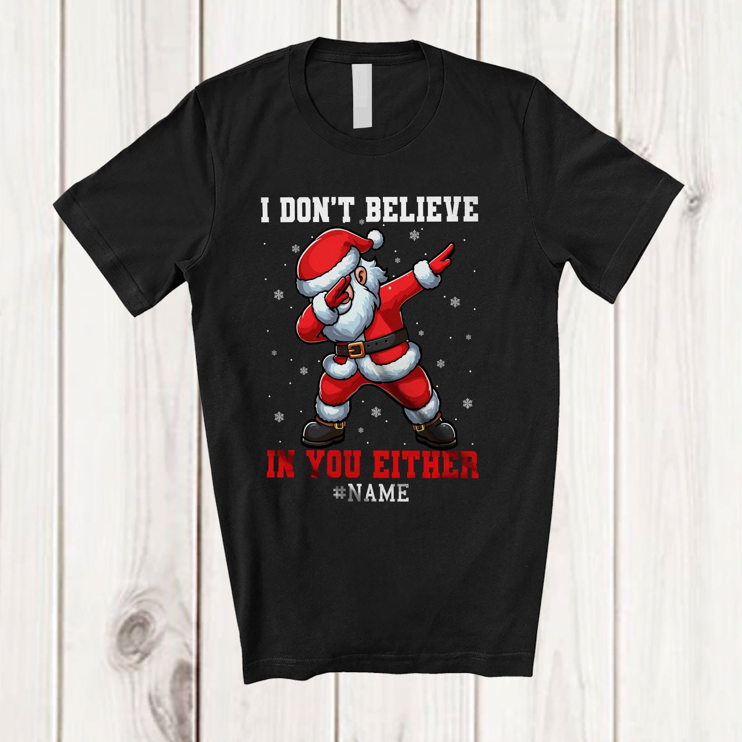 Personalized I Don't Believe In You Either; Fantastic Christmas Custom Name Santa Dabbing T-Shirt
