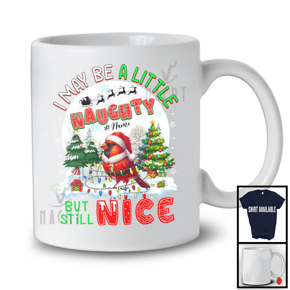 This Personalized I May Be A Little Naughty; Humorous Christmas Custom Name Cardinal Bird Santa T-Shirt is great idea gift for your family, friends in this birthday, christmas, mother's day, father's day, patrick's day or any holiday.