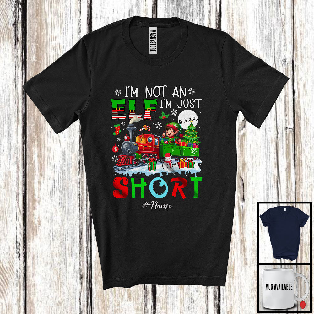 Personalized I'm Not An Elf I'm Just Short; Lovely Christmas Custom Name Elf Driving Train T-Shirt