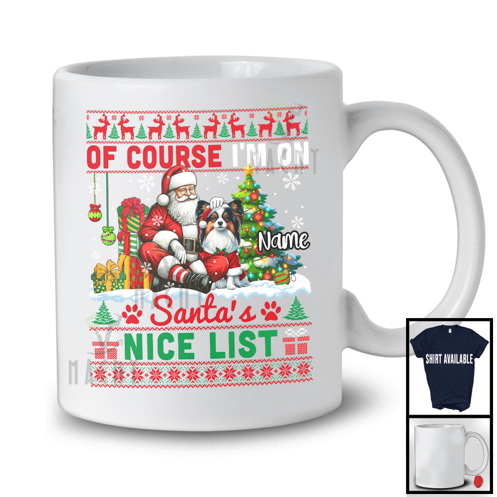 Personalized I'm on Santa's Nice List, Merry Christmas Sweater Custom Name Papillon Santa T-Shirt