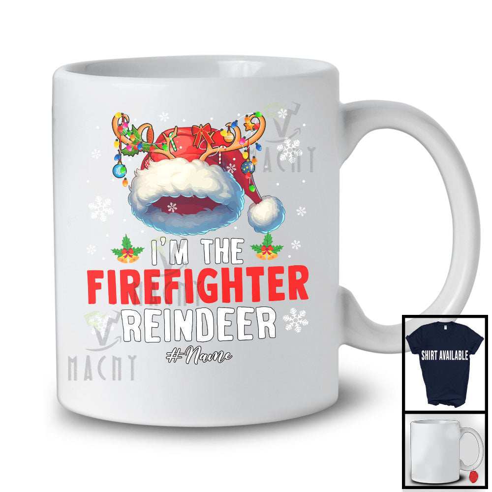 Personalized I'm The Firefighter Reindeer; Proud Christmas Santa Reindeer; Custom Name Jobs T-Shirt