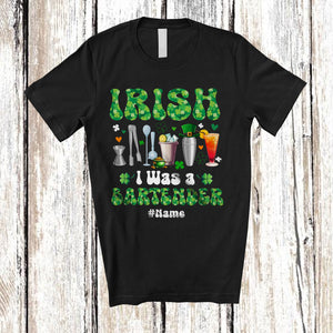 Personalized Irish I Was A Bartender; Joyful St. Patrick's Day Shamrocks; Custom Name Job T-Shirt. This cotton t-shirt is a durable staple product with a classic fit. One of the most popular items, it has a relaxed style made for everyday and casual wear.