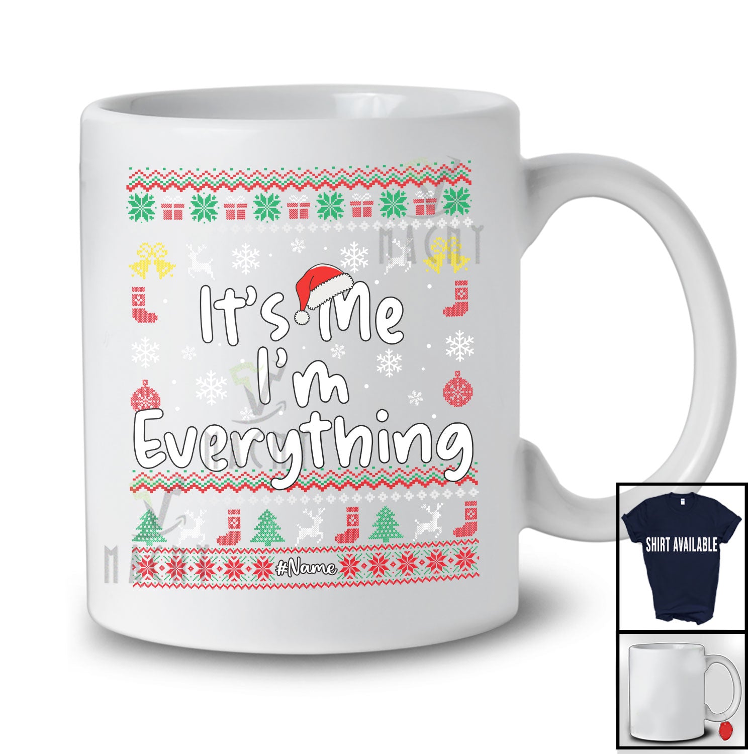 Personalized It's Me I'm Everything; Amazing Christmas Sweater Santa; Custom Name Couple T-Shirt. This cotton t-shirt is a durable staple product with a classic fit. One of the most popular items, it has a relaxed style made for everyday and casual wear.