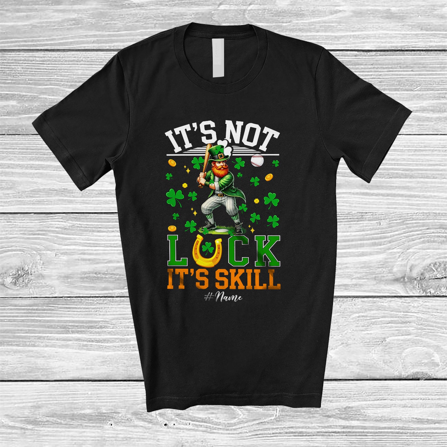 • Personalized It's Not Luck It's Skill; Joyful St. Patrick's Day Custom Name Baseball Player Leprechaun T-Shirt. This cotton t-shirt is a durable staple product with a classic fit. One of the most popular items, it has a relaxed style made for everyday and casual wear.