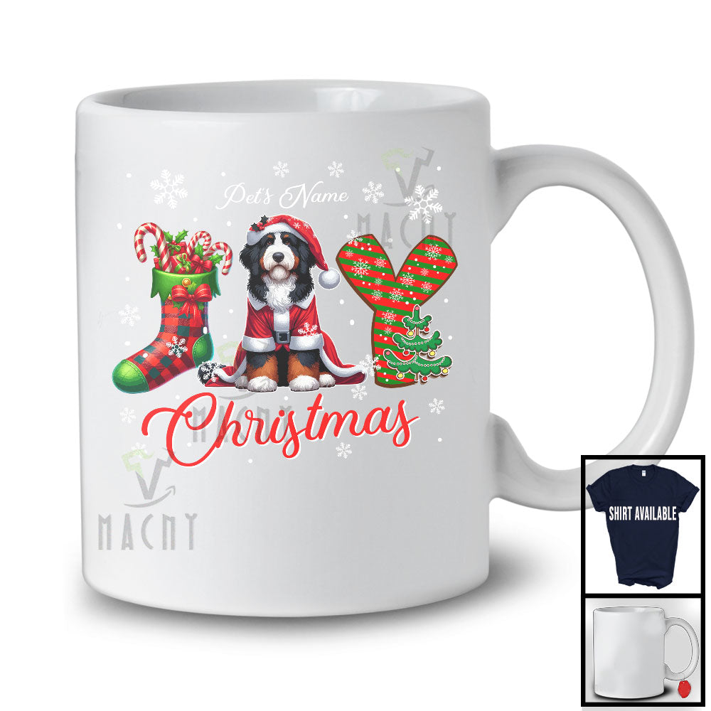Personalized Joy Christmas, Lovely Custom Name Santa Bernedoodle, X-mas Sock Snowing T-Shirt