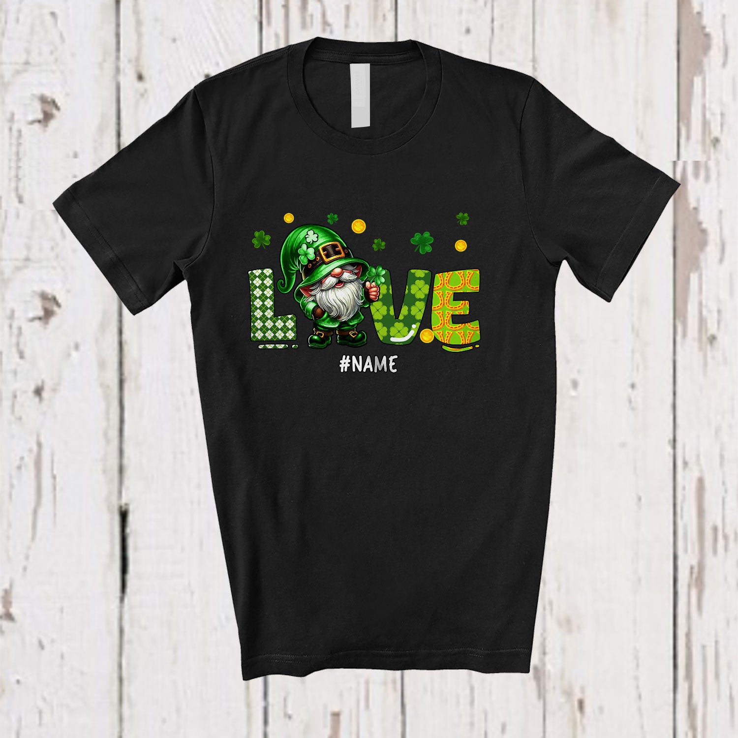 • Every product is unique, just like you. If you're looking for a product that fits the mold of your life, the Personalized Love; Adorable St Patrick's Day Custom Name Gnome Holding Shamrock; Family T-Shirt is for you.