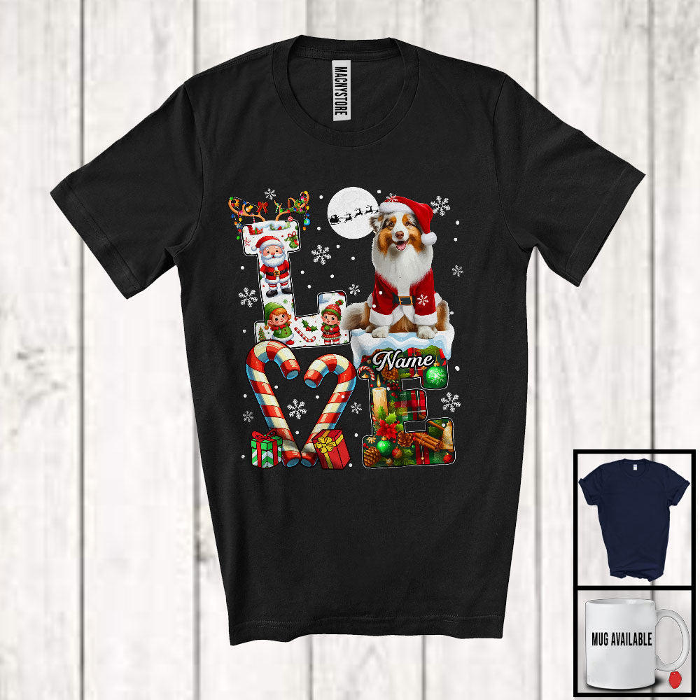 Personalized LOVE, Awesome Christmas Custom Name Australian Shepherd Santa, Plaid Animal T-Shirt