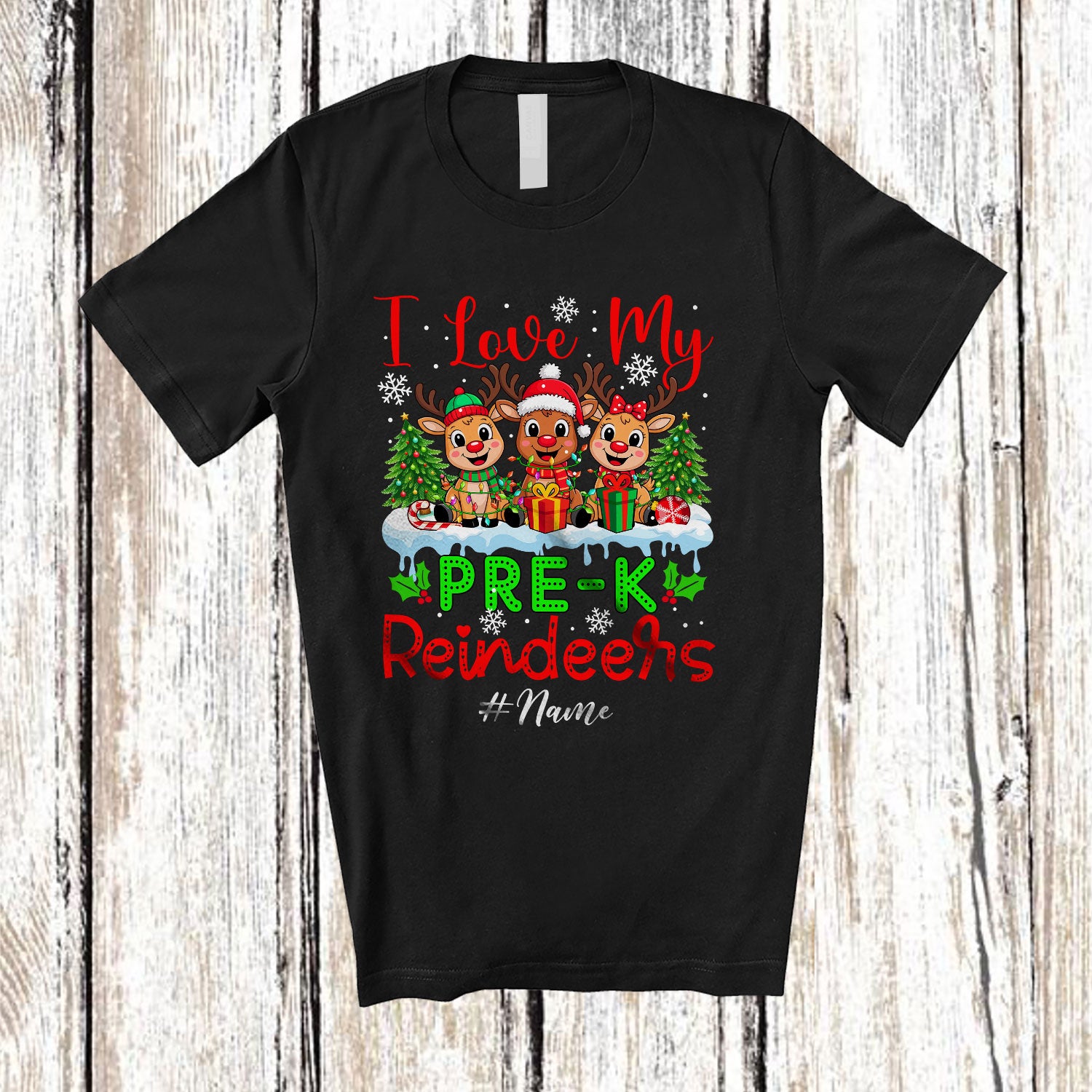 Personalized Love My Pre-K Reindeers; Lovely Christmas Custom Name Teacher Three Reindeer T-Shirt