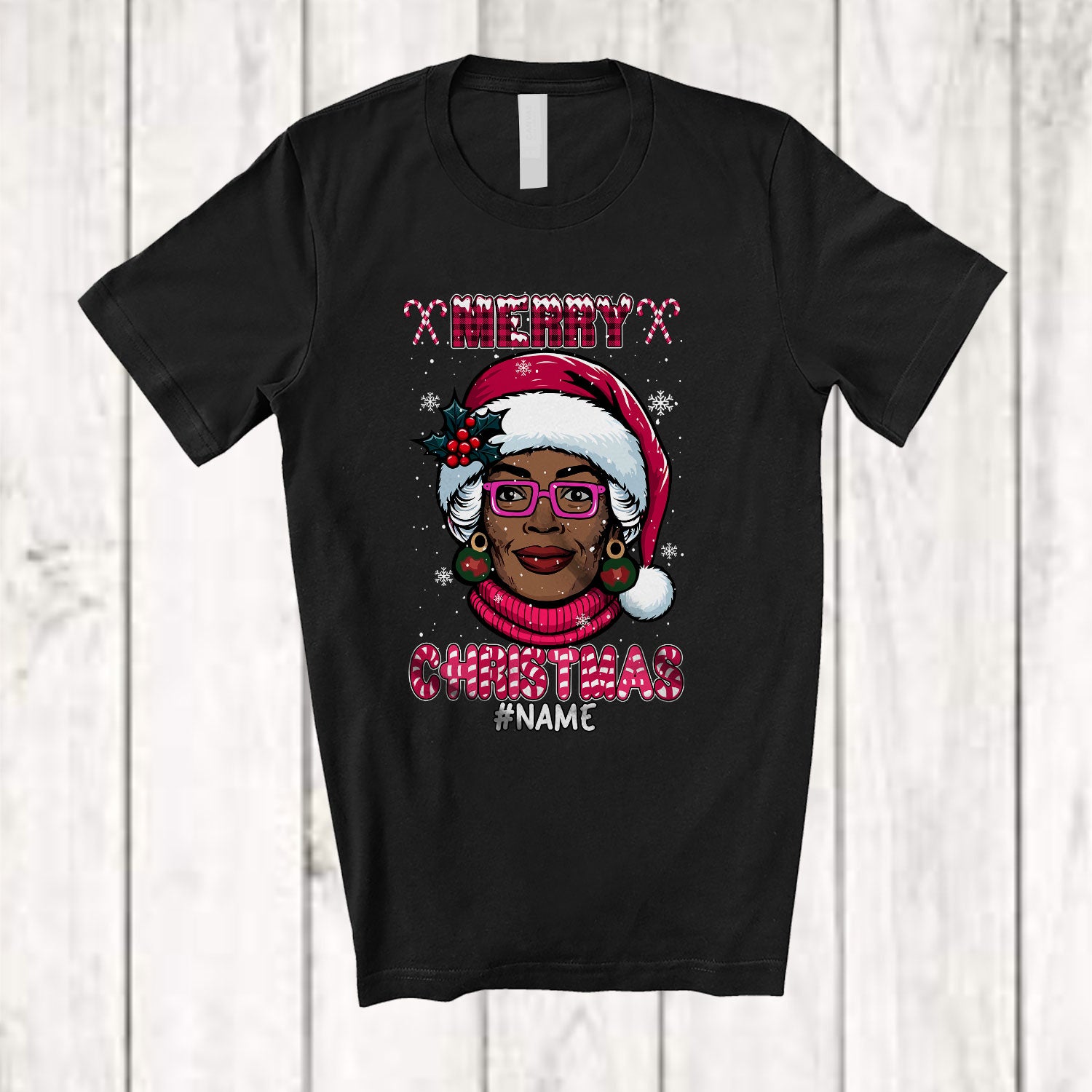Personalized Merry Christmas; Fantastic Custom Name Woman Afro Pink Santa; African Family T-Shirt