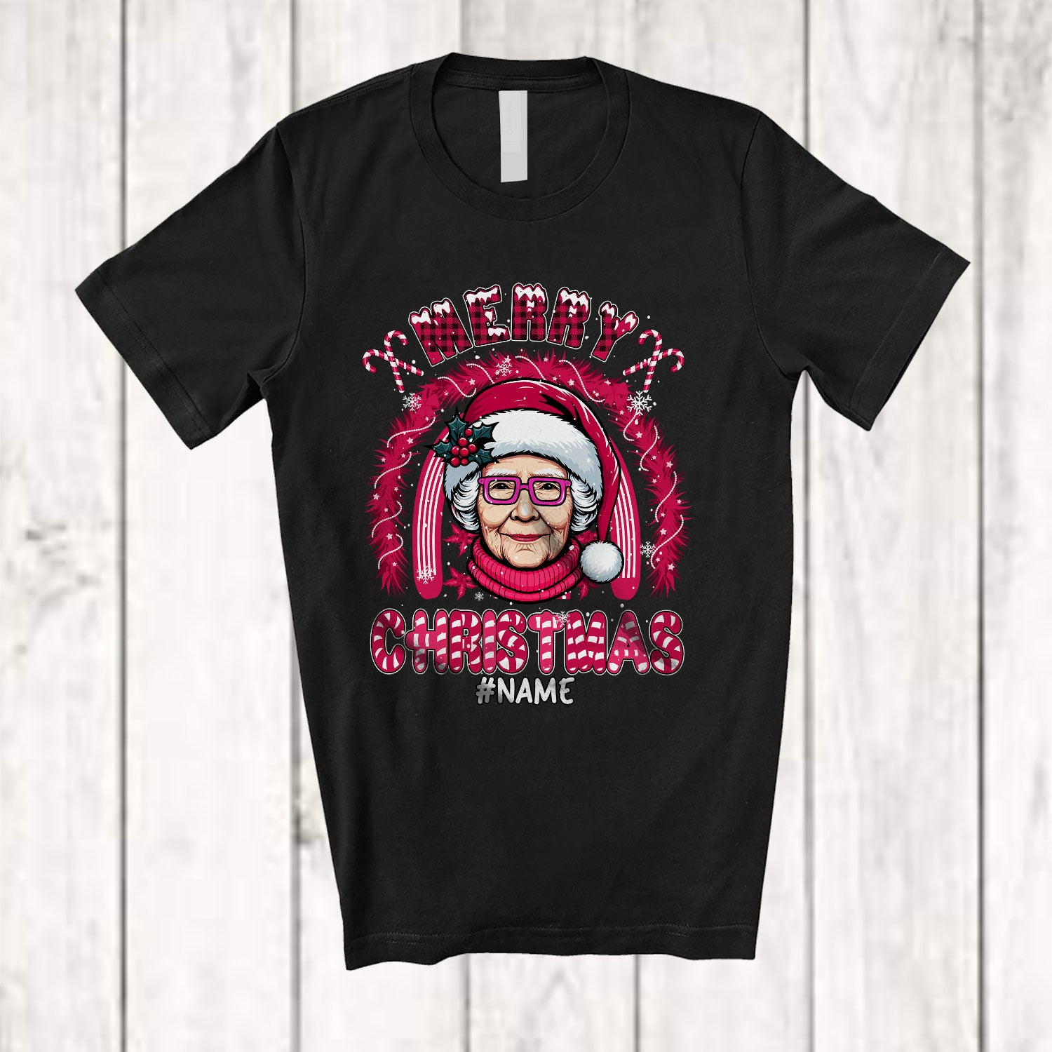 Personalized Merry Christmas; Fantastic Custom Name Woman Pink Santa; Rainbow African Family T-Shirt