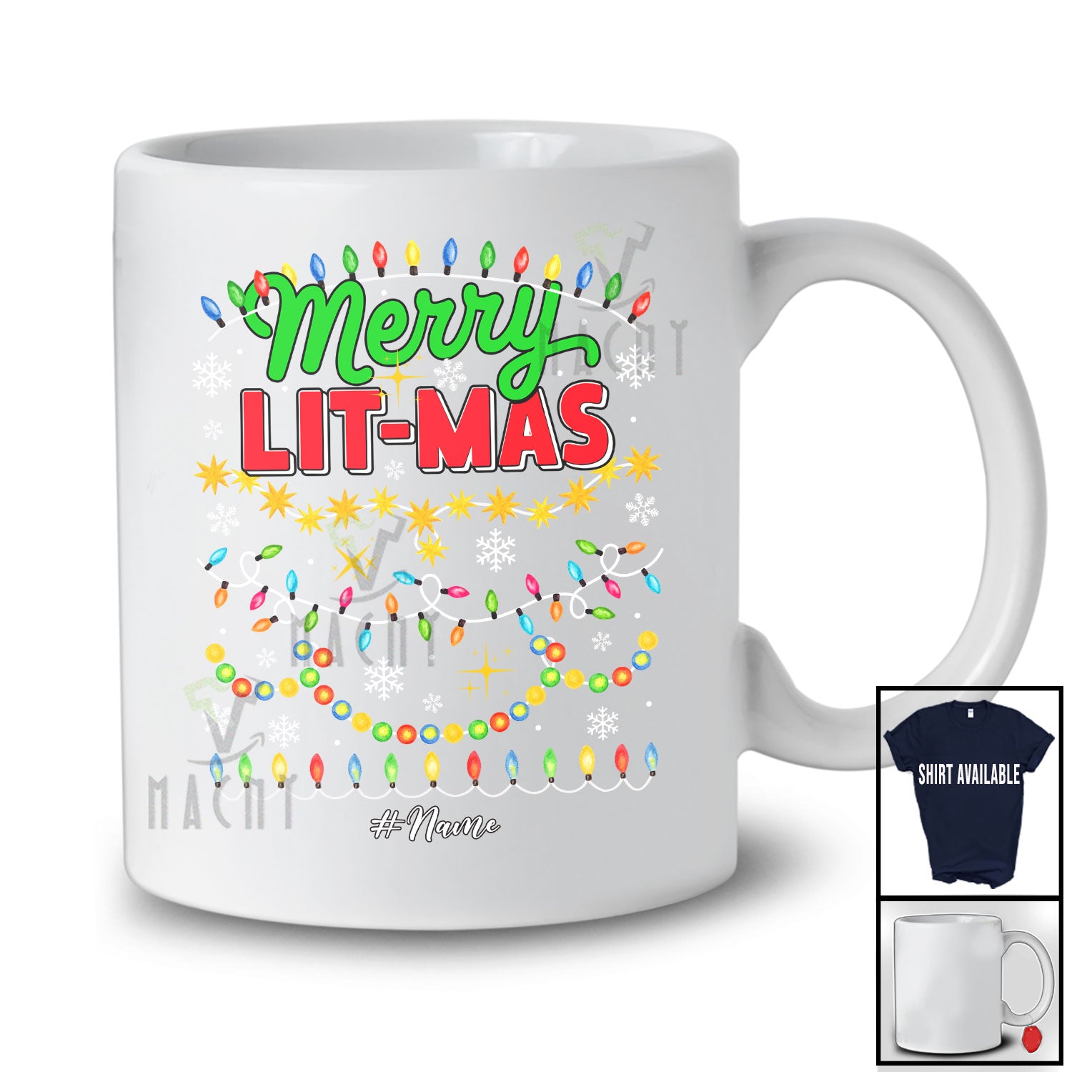 This Personalized Merry Lit-mas; Amusing Christmas Colorful Lights Snow; Custom Name Family T-Shirt is great idea gift for your family, friends in this birthday, christmas, mother's day, father's day, patrick's day or any holiday.