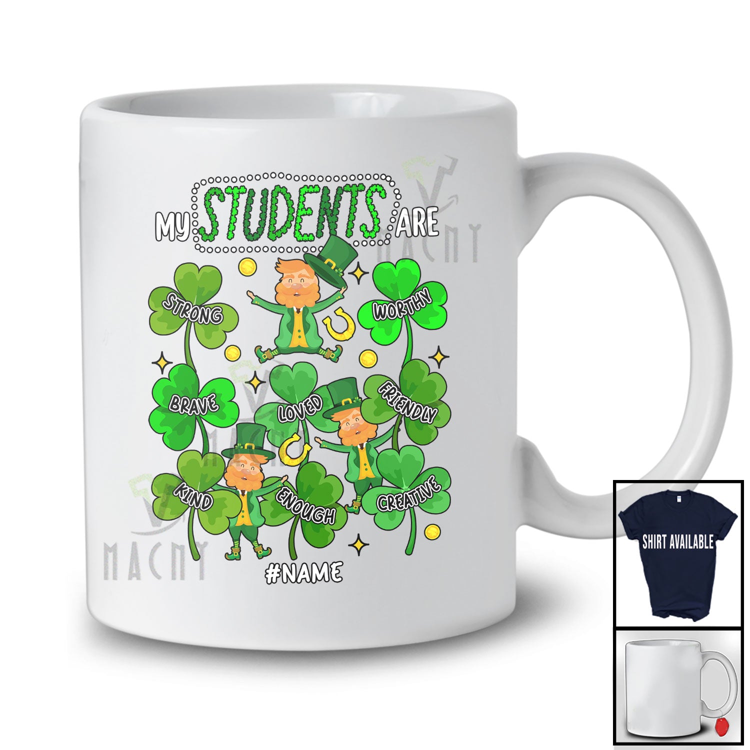 Personalized My Student Are Strong; Lovely St. Patrick's Day Shamrocks; Custom Name Teacher T-Shirt. This cotton t-shirt is a durable staple product with a classic fit. One of the most popular items, it has a relaxed style made for everyday and casual wear.
