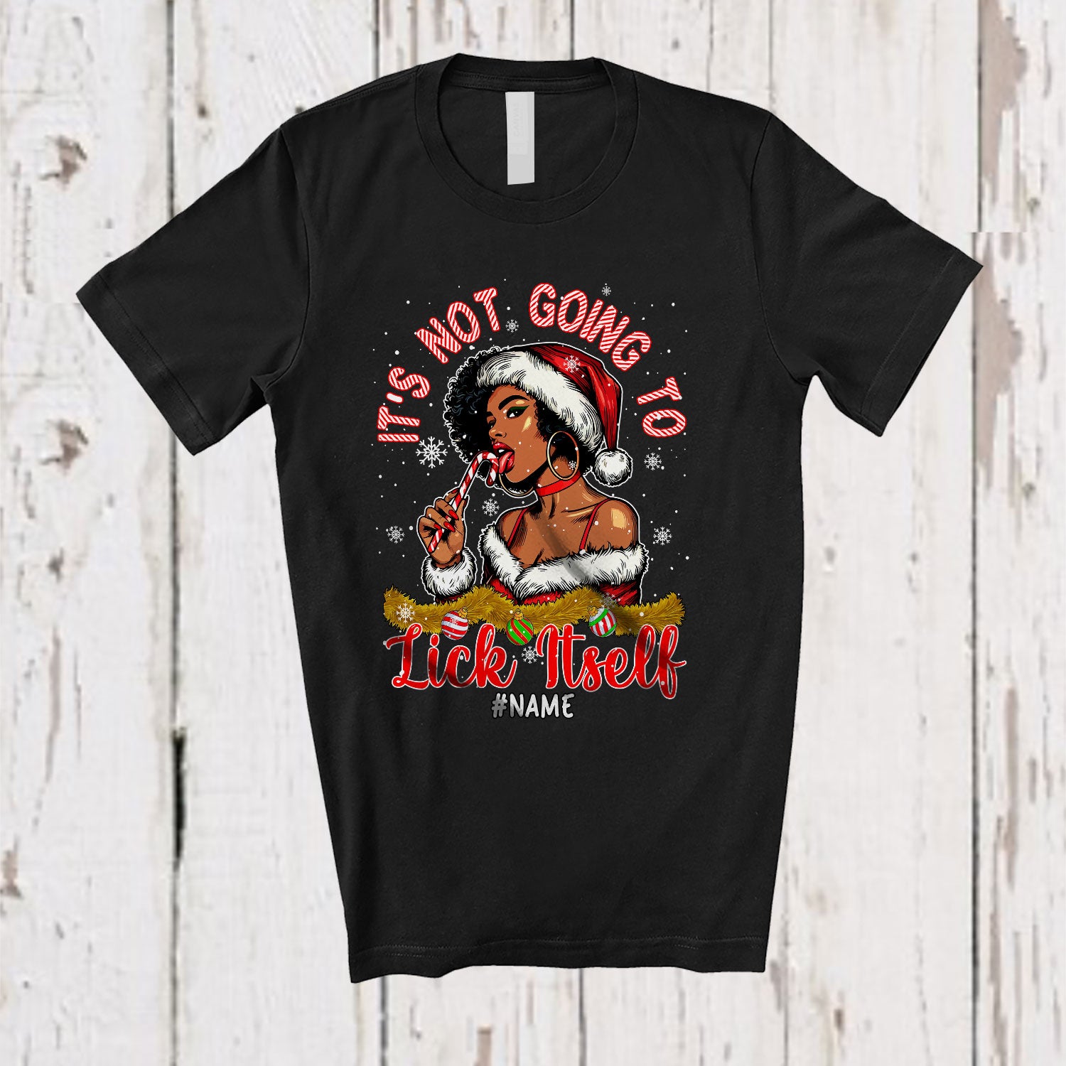 Personalized Not Going to Lick Itself; Lovely Christmas Candy Cane Afro Women; Custom Name Adult Family T-Shirt
