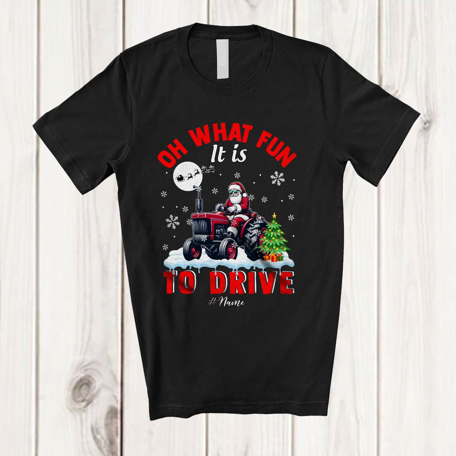 Personalized Oh What Fun It is To Drive; Amusing Christmas Santa Tractor; Custom Name Driver T-Shirt