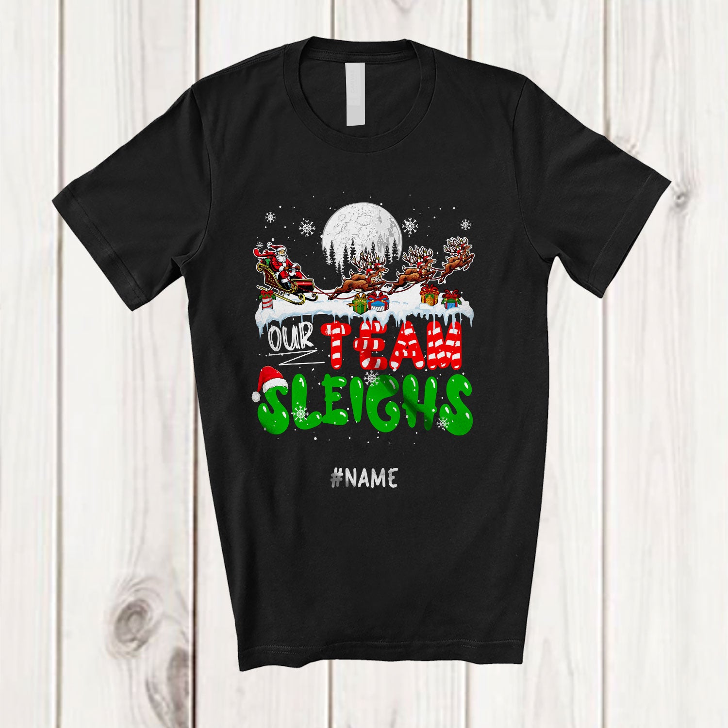 The Personalized Our Team Sleighs; Joyful Christmas Custom Name Santa Sled Reindeer; Worker T-Shirt is the yin, to your yang. You've found what you're looking for.