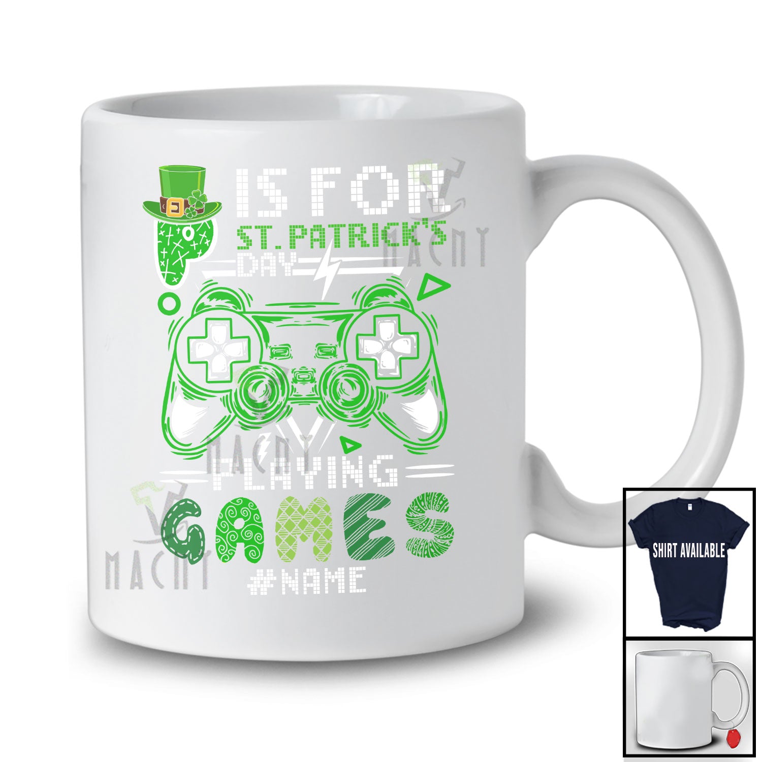 • Personalized P Is For Playing Games; Cheerful St. Patrick's Day Video Games; Custom Name Gamer T-Shirt. This cotton t-shirt is a durable staple product with a classic fit. One of the most popular items, it has a relaxed style made for everyday and casual wear.