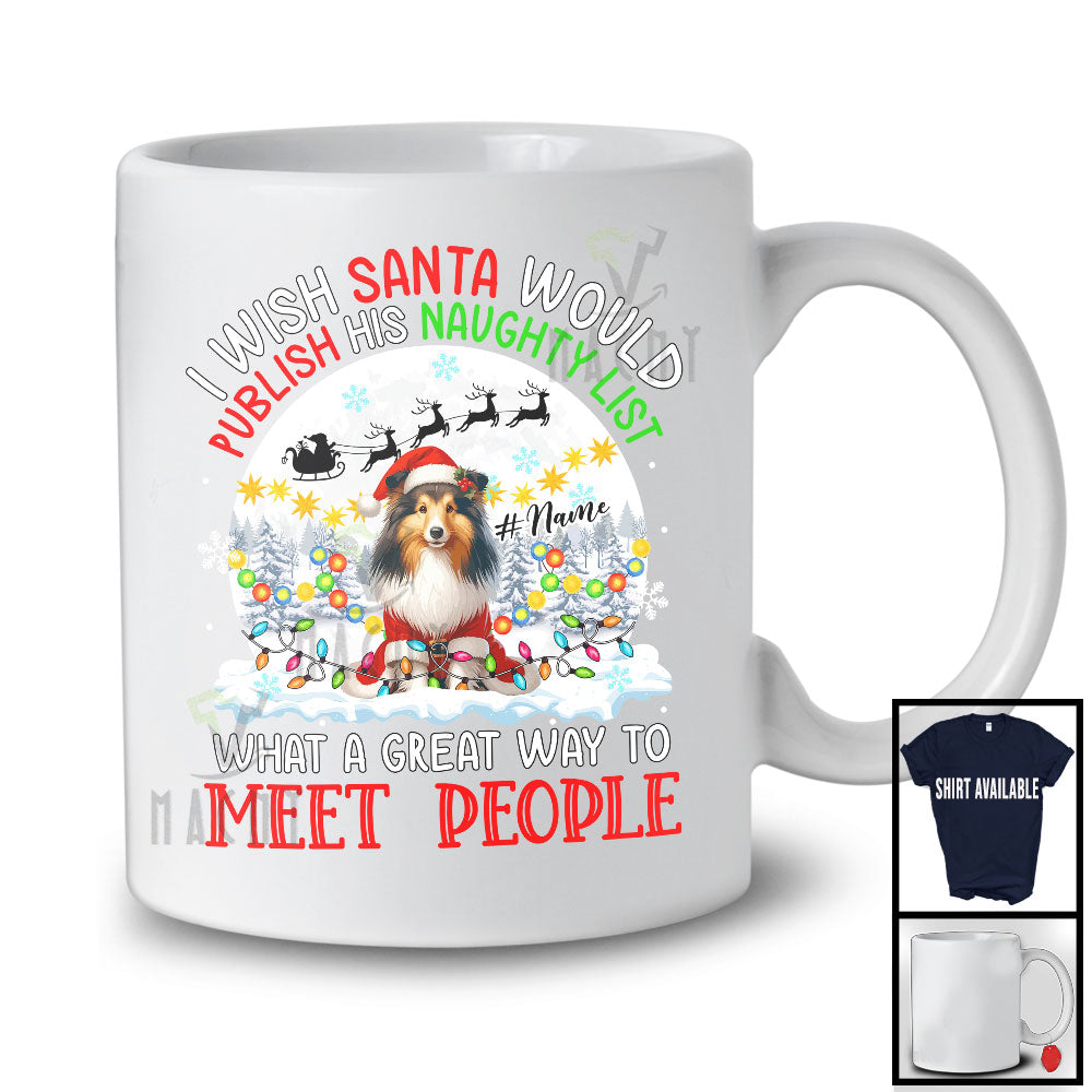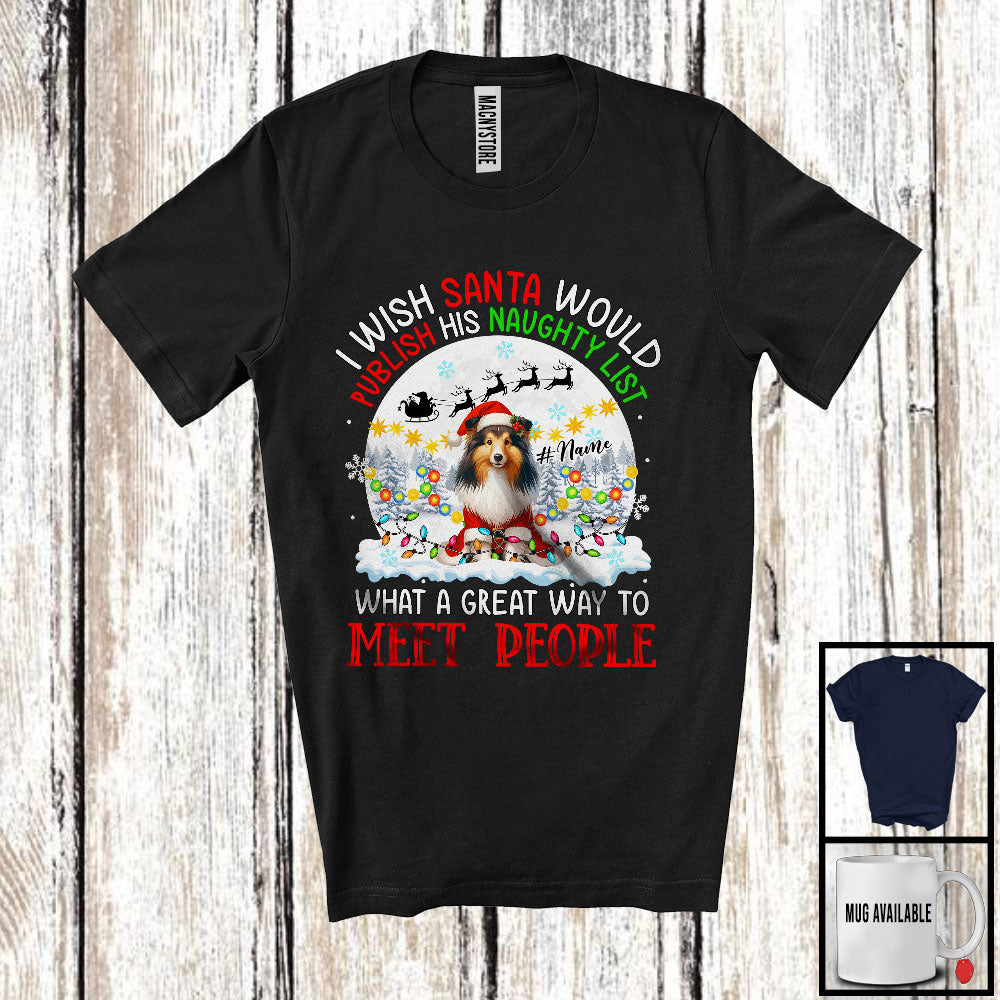 Personalized Publish His Naughty List; Lovely Christmas Custom Name Shetland Sheepdog T-Shirt